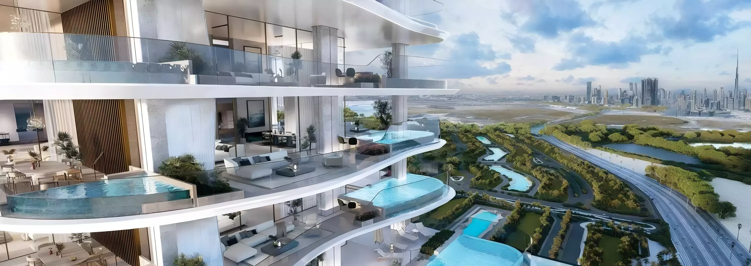 The architectural design of Mansory Residences is a breathtaking fusion of contemporary aesthetics and automotive-inspired artistry. The tower's sleek silhouette and striking facade reflect Mansory's signature design ethos, promising an address that is both an architectural marvel and a statement of discerning taste. Expansive floor-to-ceiling windows bathe interiors in natural light, offering residents captivating panoramic views of the city skyline and the picturesque Meydan Horizon. Each of the meticulously crafted 1 to 4-bedroom apartments, including luxurious duplexes and premium units, features optimized layouts and the highest quality materials, ensuring a living space that is both exceptionally functional and exquisitely refined.