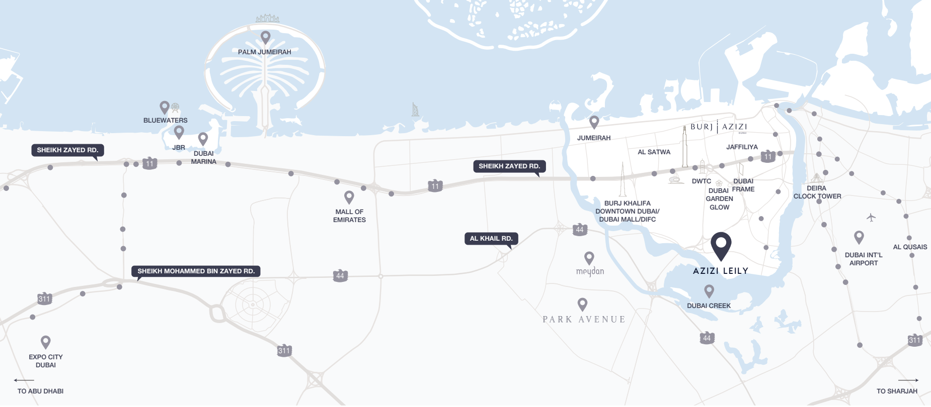 Al Jaddaf has rapidly transformed into one of Dubai's most desirable and well-connected neighborhoods. It masterfully balances peaceful waterfront tranquility with effortless access to key destinations. Residents of Azizi Leily benefit from: