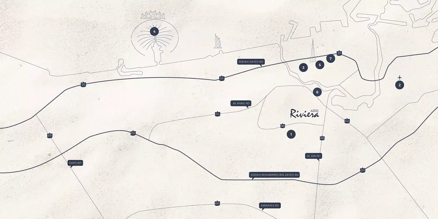 Meydan is celebrated for its exceptional connectivity and a lifestyle that balances serene living with urban vibrancy. Azizi Riviera 69 places you at the epicenter of convenience, mere minutes away from Dubai’s most iconic landmarks. Residents will enjoy quick access to the world-famous Dubai Mall (16 minutes), the luxurious Palm Jumeirah (24 minutes), the iconic Burj Al Arab (23 minutes), and the bustling promenades of The Walk JBR (28 minutes). This prime location ensures that every facet of Dubai’s cosmopolitan charm is within easy reach, making it an ideal address for both professionals and families.