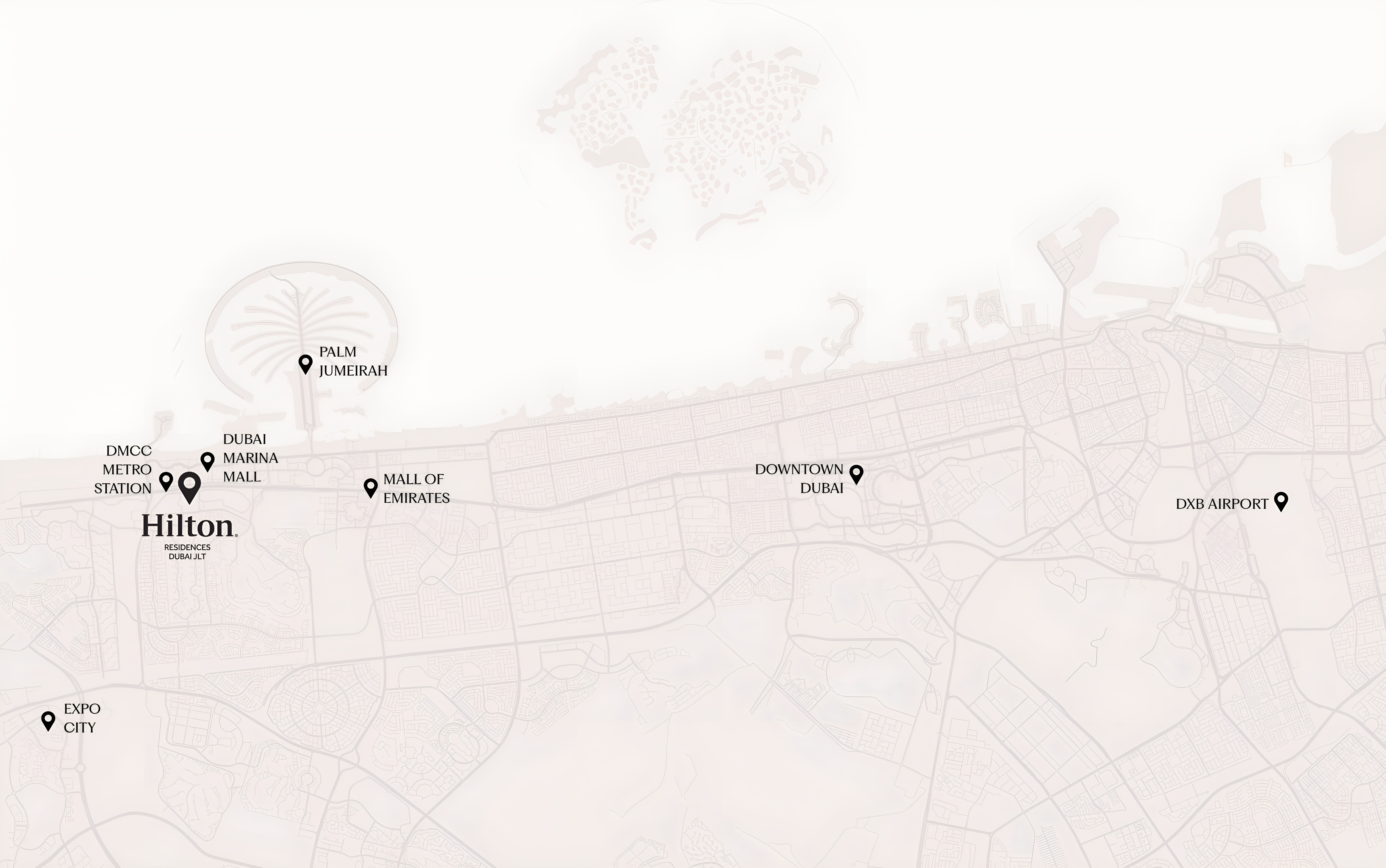 Strategically positioned in Cluster F of JLT, Hilton Residences provides residents with unparalleled connectivity. With the DMCC Metro Station just a minute's walk away, navigating Dubai's vibrant landscape is effortless. Enjoy immediate access to major business districts, the glittering Dubai Marina, and an array of leisure destinations, ensuring a lifestyle of ultimate convenience. Jumeirah Lake Towers itself is a thriving, master-planned community renowned for its picturesque promenades, lush parks, diverse retail outlets, and an eclectic dining scene, creating a perfect environment for living, working, and relaxation.