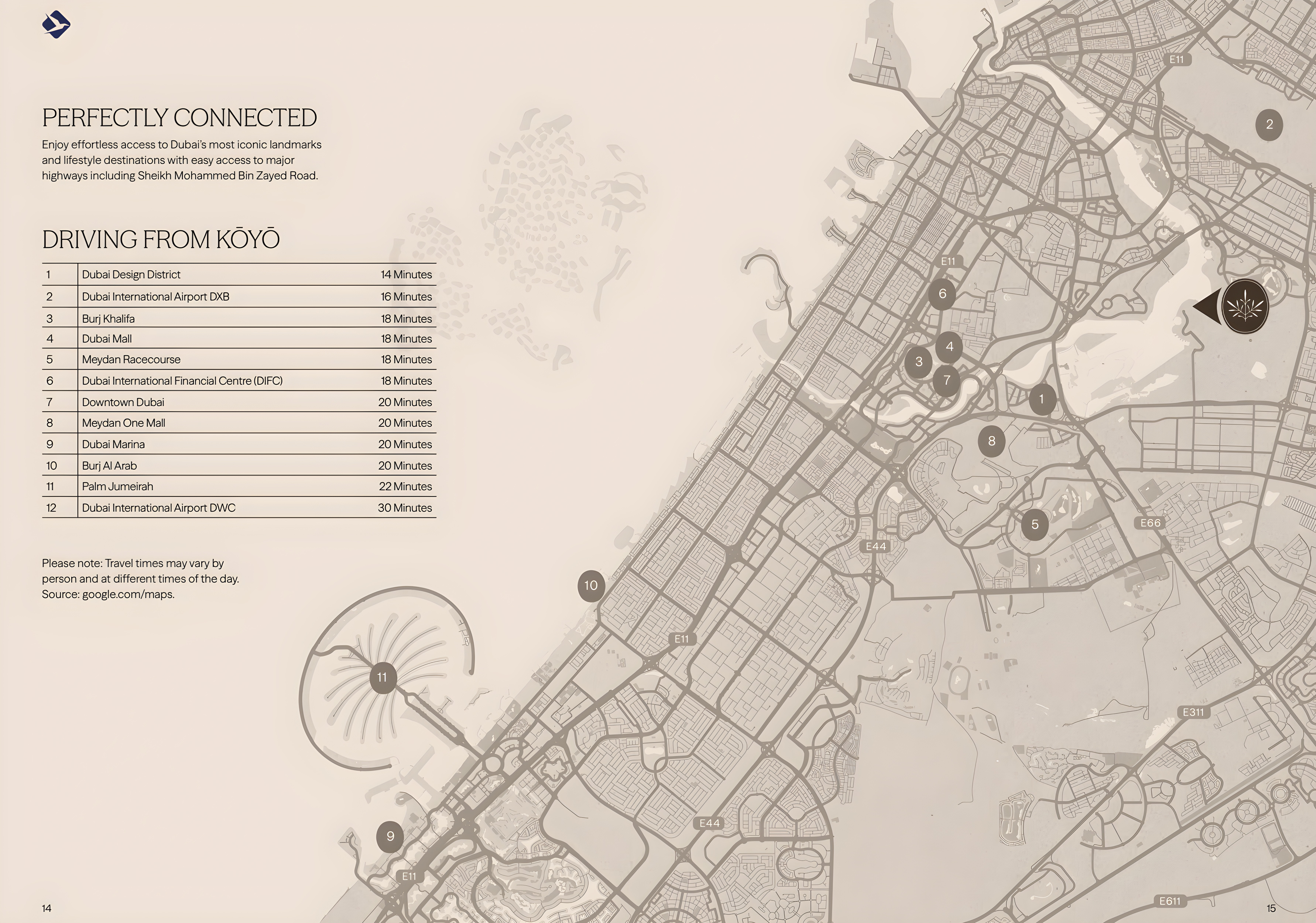 Each residence at Koyo Residence is a testament to thoughtful design, where modern comforts seamlessly integrate with refined aesthetics. The development prioritizes clarity in design and spacious layouts, making it equally appealing to discerning end-users seeking a tranquil home and astute investors looking for high-demand units within an exclusive setting. The balanced mix of 18 one-bedroom and 24 two-bedroom homes caters to diverse needs, promising strong rental yields and capital appreciation in one of Dubai's most coveted districts.