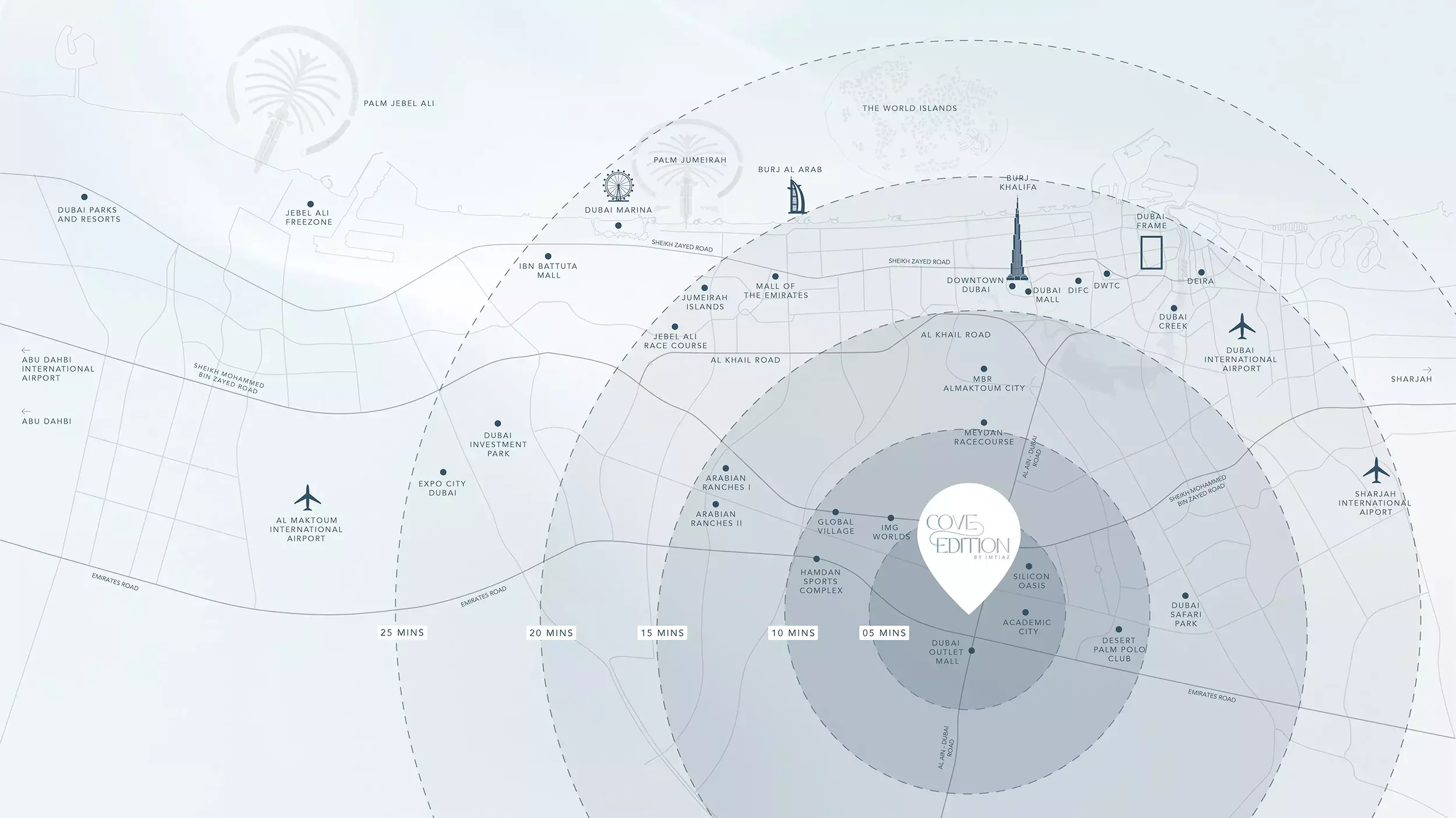 Nestled in Dubailand, Cove Edition By Imtiaz provides residents with the dual advantage of serene suburban tranquility and unparalleled urban connectivity. Imagine a peaceful retreat just a short drive from the pulsating energy of Downtown Dubai, offering effortless access to the city’s premier commercial and leisure hubs, including iconic landmarks like the Burj Khalifa and The Dubai Mall. For global citizens, the proximity and easy accessibility to Dubai International Airport are invaluable, making international travel a breeze. This strategic location truly positions Cove Edition as an ideal address for both personal sanctuary and vibrant city engagement.