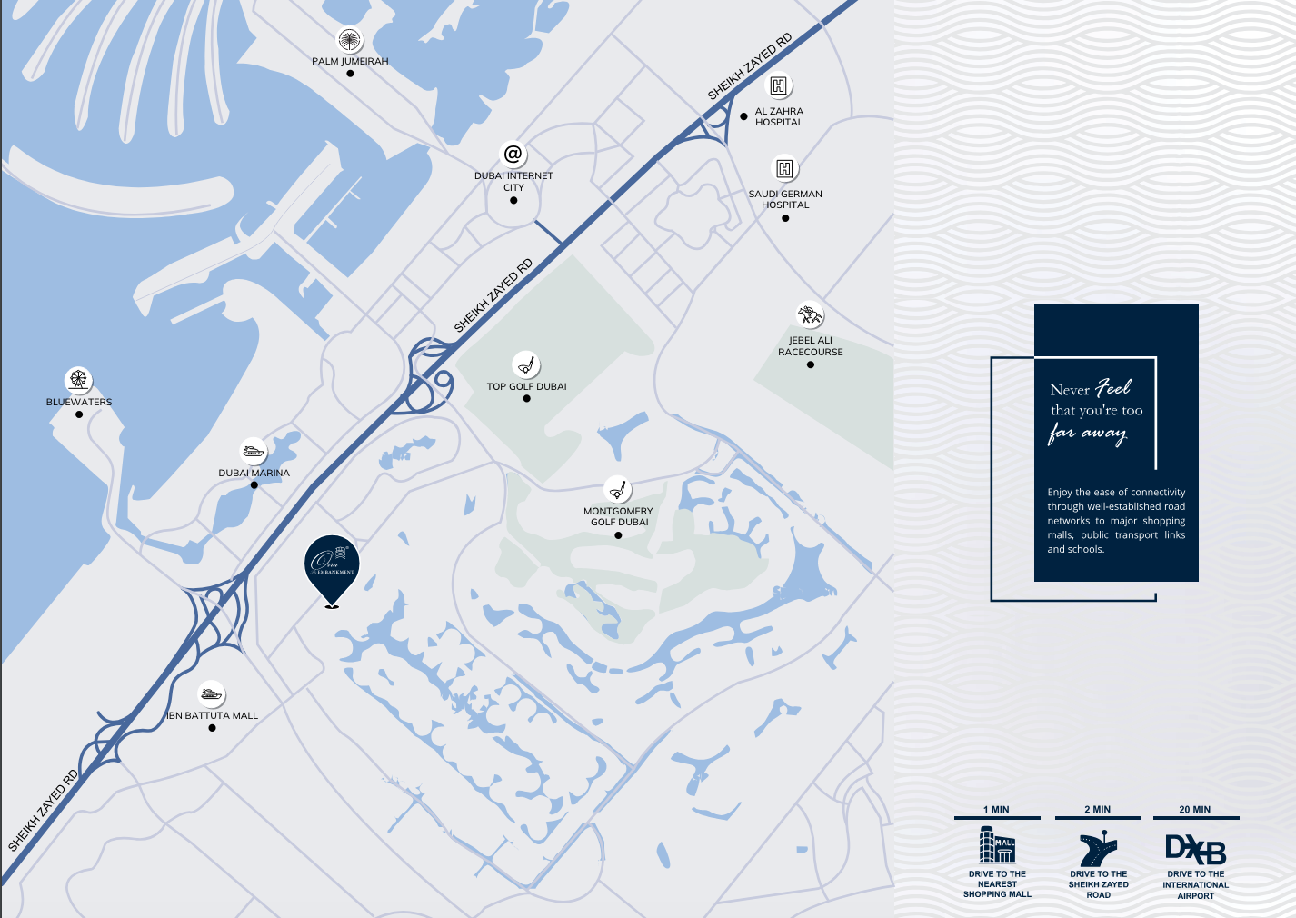 Orra the Embankment boasts a prime location that ensures seamless connectivity and a lifestyle enriched with leisure and convenience. Residents will find themselves steps away from an array of recreational cafes, diverse sporting activities, and tranquil waterfront lounges. Its proximity to Dubai's popular attractions and landmarks makes it an ideal address for both families and individuals seeking a dynamic and connected urban experience.