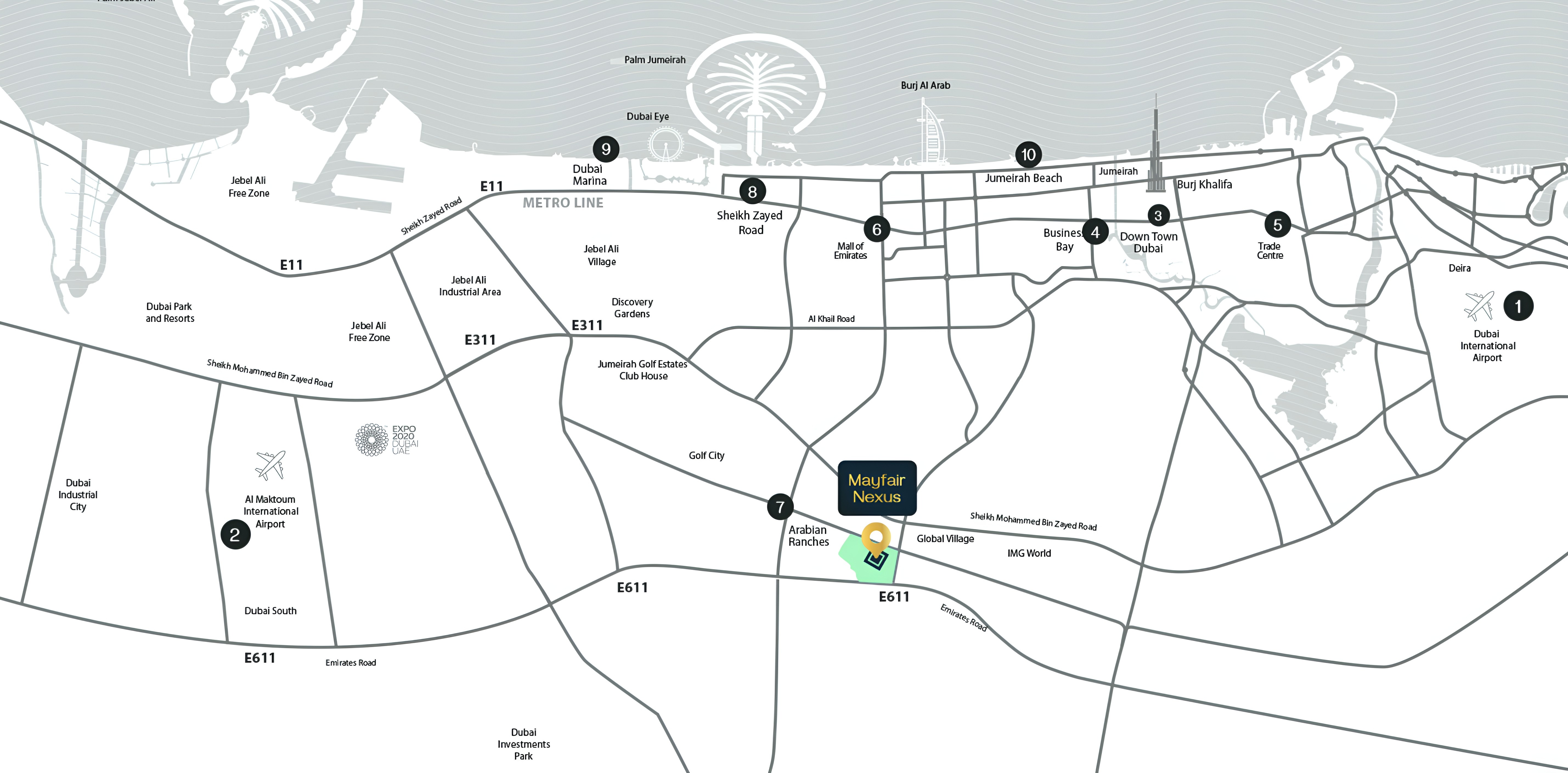 Strategically situated within Dubai Land, Mayfair Nexus provides residents with the ultimate convenience of urban connectivity while preserving a tranquil residential ambiance. Its prime position ensures effortless access to Dubai’s major business hubs, a plethora of esteemed educational institutions, advanced healthcare facilities, and an array of world-class shopping and entertainment destinations. Excellent transportation links further enhance its appeal, connecting you seamlessly to every corner of the city. This fusion of accessibility and serene living truly sets Mayfair Nexus apart.