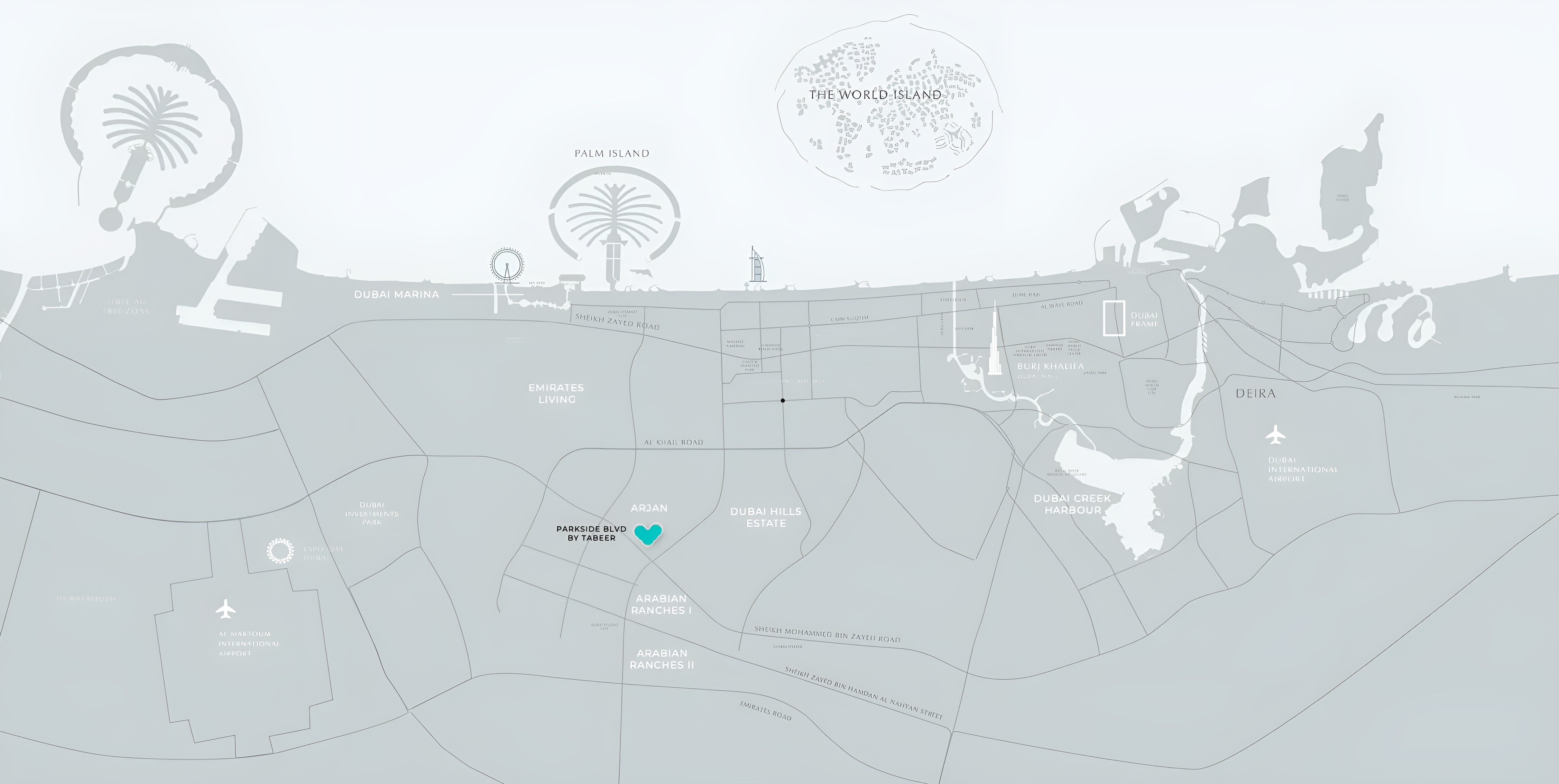 Strategically positioned in the heart of Arjan, Parkside Boulevard grants residents seamless access to Dubai's most sought-after destinations. Its prime location places you mere minutes from the retail, dining, and entertainment offerings of Dubai Hills Mall. Families benefit from proximity to premier educational institutions like the Australian International School, while world-class healthcare is readily available at Mediclinic Parkview Hospital and Neuro Spinal Hospital. Daily conveniences are effortless with Carrefour, Viva, and Nesto supermarkets just a stone's throw away, ensuring a lifestyle of ultimate convenience without compromising on luxury.