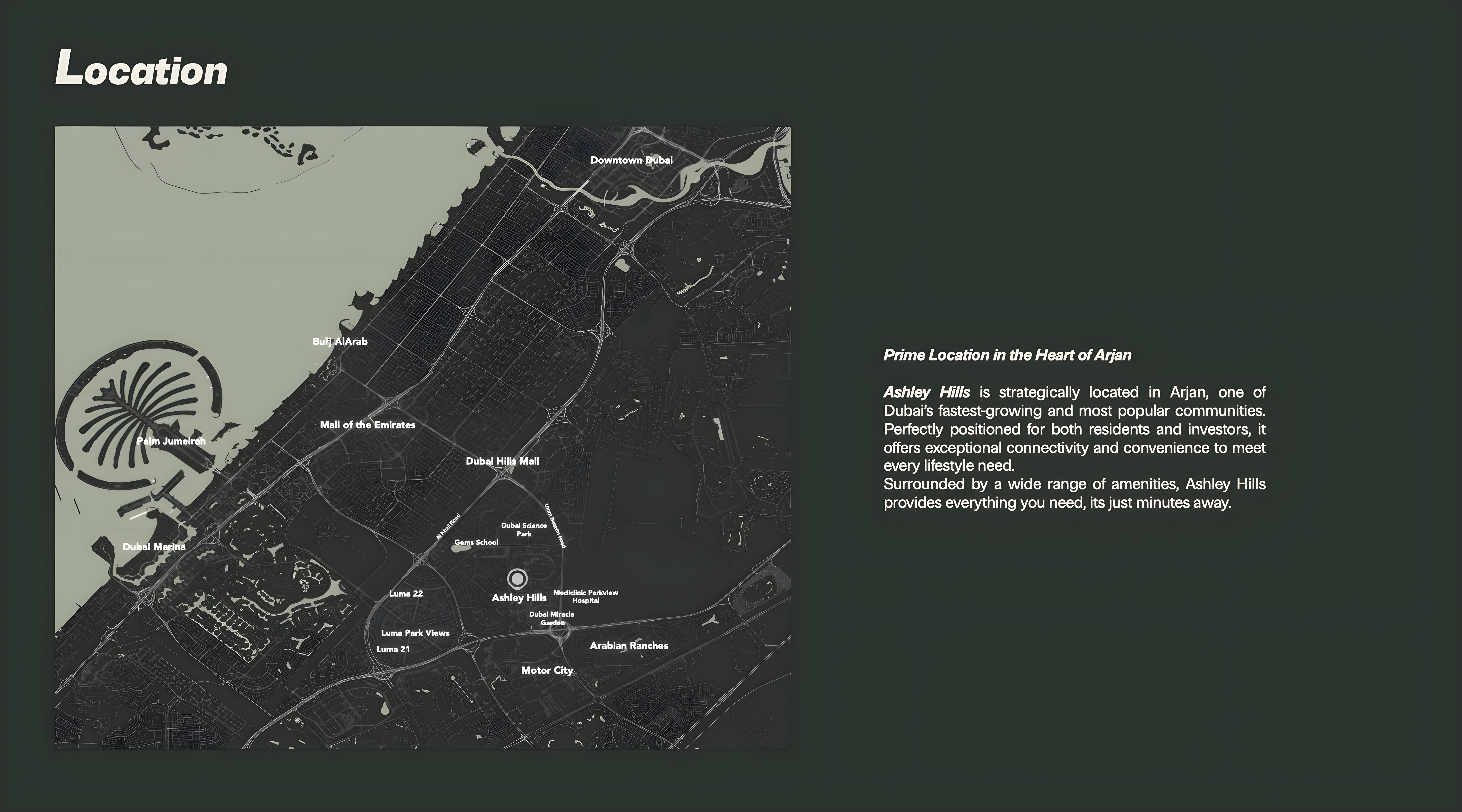 Investing in Ashley Hills means securing a foothold in a rapidly appreciating Dubai market. Arjan is renowned for consistent property value growth and attractive rental yields, making this off-plan opportunity particularly compelling. With flexible payment plans available, such as 10% down payment, 60% during construction, and 30% on handover, Townx Real Estate Development makes luxury living and smart investing accessible. Ashley Hills isn't just a home; it's a strategic asset designed for long-term prosperity and an elevated lifestyle.