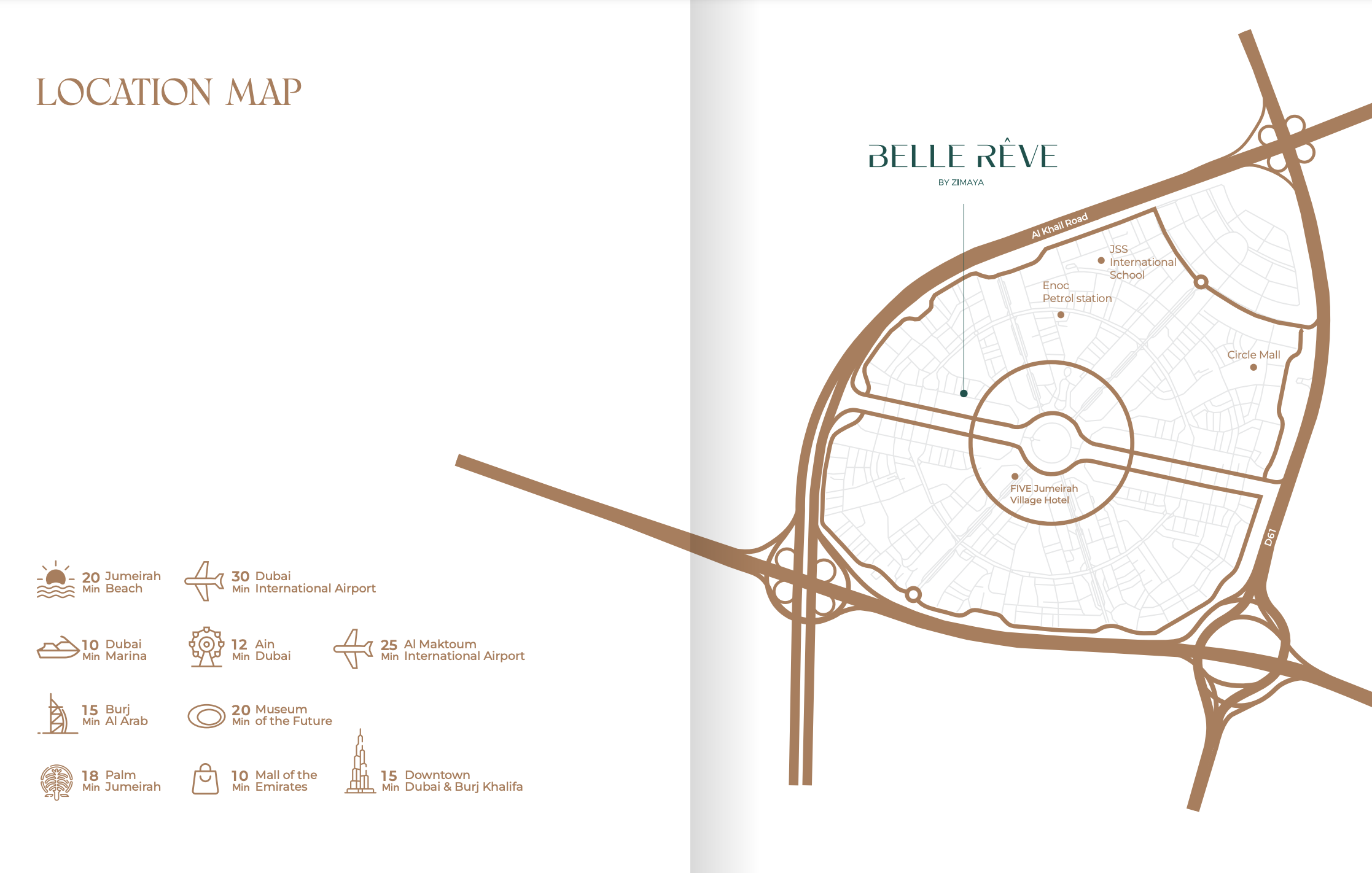 Strategically positioned within one of Dubai’s most sought-after residential communities, Belle Reve By Zimaya enjoys the tranquil charm of JVC, renowned for its lush green spaces and family-friendly atmosphere. Residents will benefit from seamless connectivity to major landmarks and business hubs across Dubai, ensuring a peaceful retreat without sacrificing access to the city's dynamic pulse. With its prime location, the project offers an ideal balance for those seeking a tranquil environment coupled with the excitement of city life.