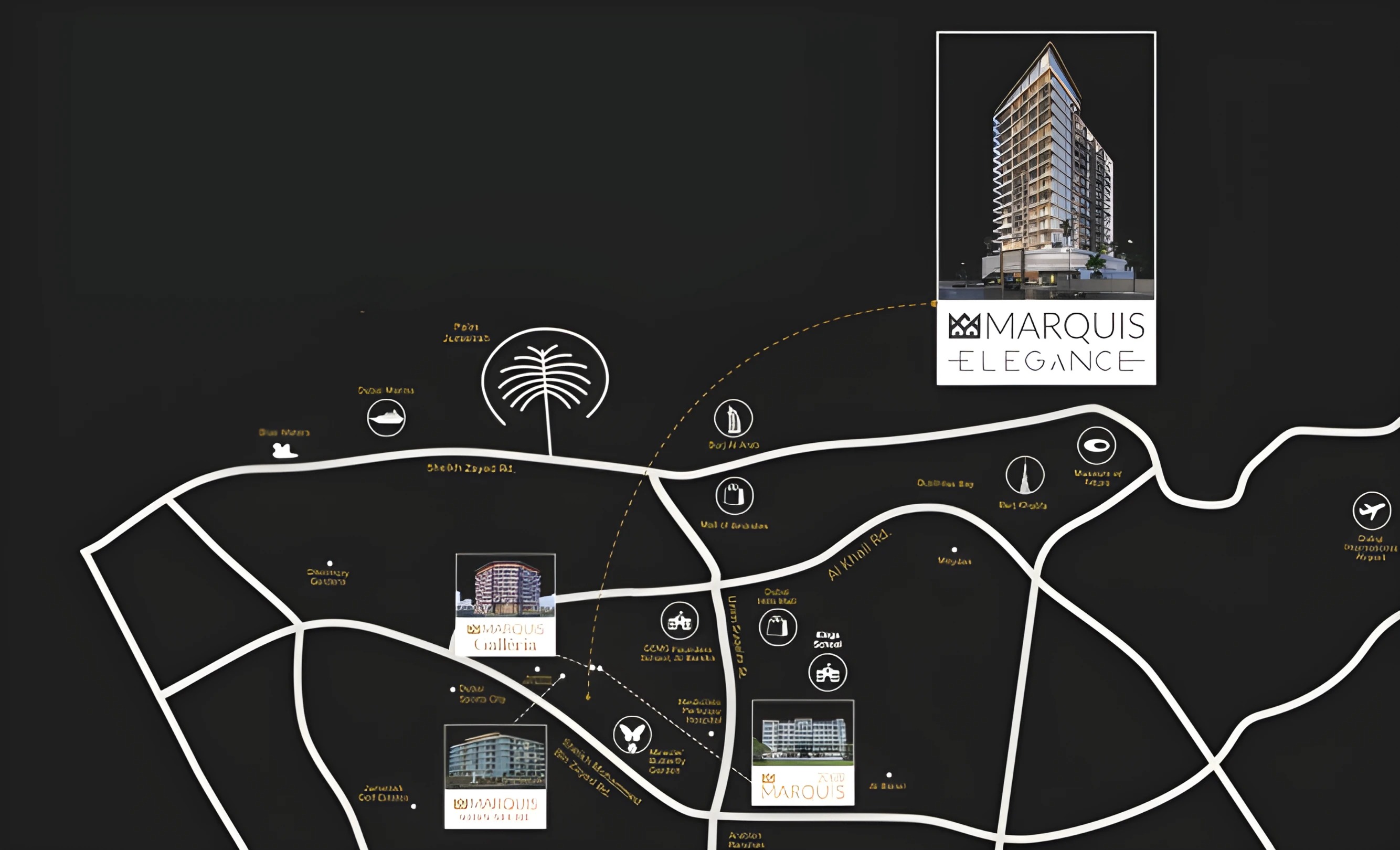 Strategically located in Arjan, residents benefit from quick proximity to a myriad of popular landmarks, world-class malls, and key destinations across Dubai. This prime address within Dubailand ensures excellent connectivity, placing you at the nexus of entertainment, business, and leisure. Living at Marquis Elegance means having the vibrant world of Arjan unfold at your doorstep, with every convenience and luxury within easy reach.