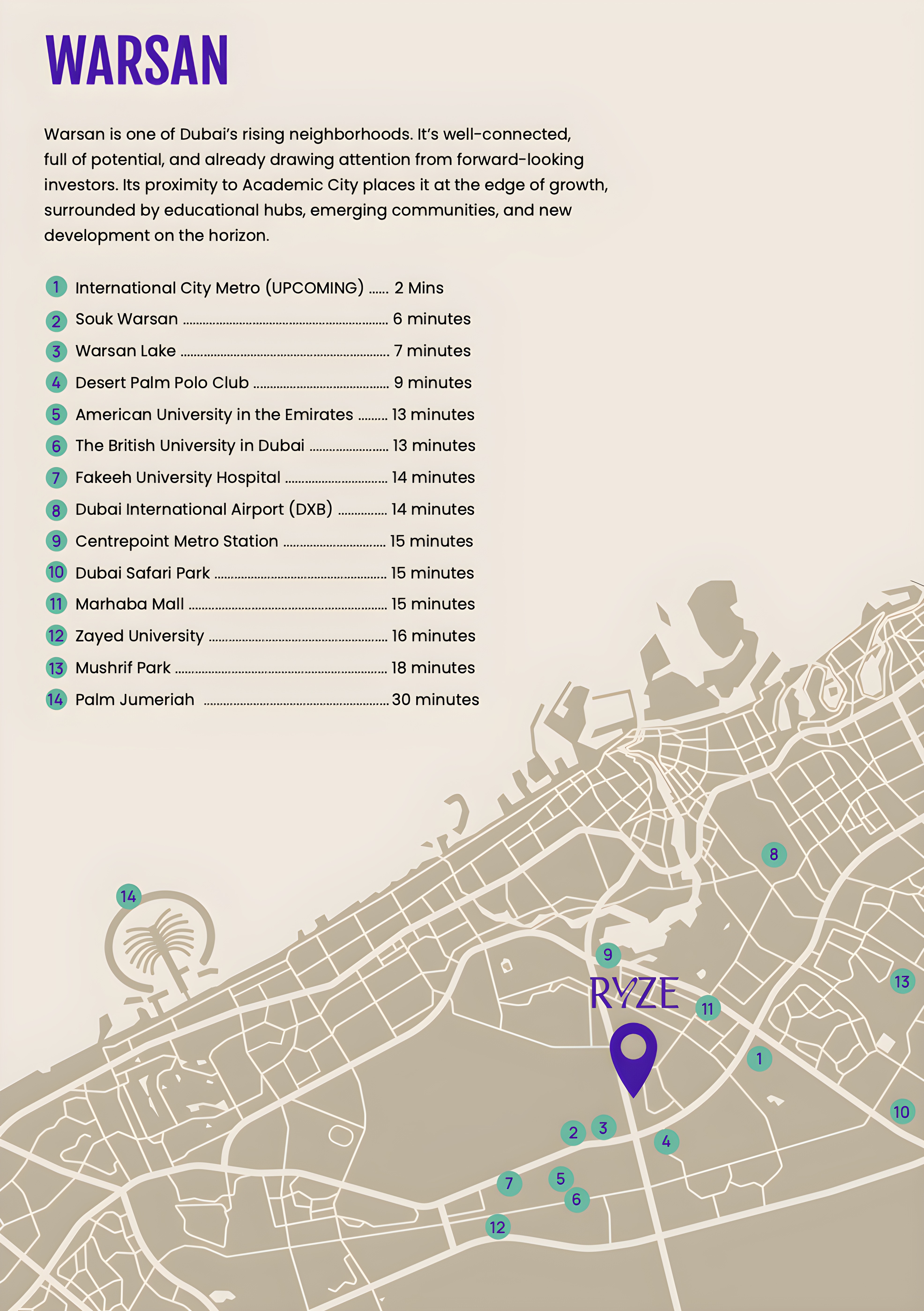 Strategically located, Ryze boasts immediate proximity to the newly inaugurated International City Metro Station, placing the entire city at your fingertips. Residents will enjoy effortless commutes to Dubai's major business hubs, entertainment destinations, and pristine beaches, ensuring a lifestyle of ultimate ease and accessibility. The Warsan Residential area itself is a dynamic and rapidly evolving community, promising sustained growth and a welcoming environment.