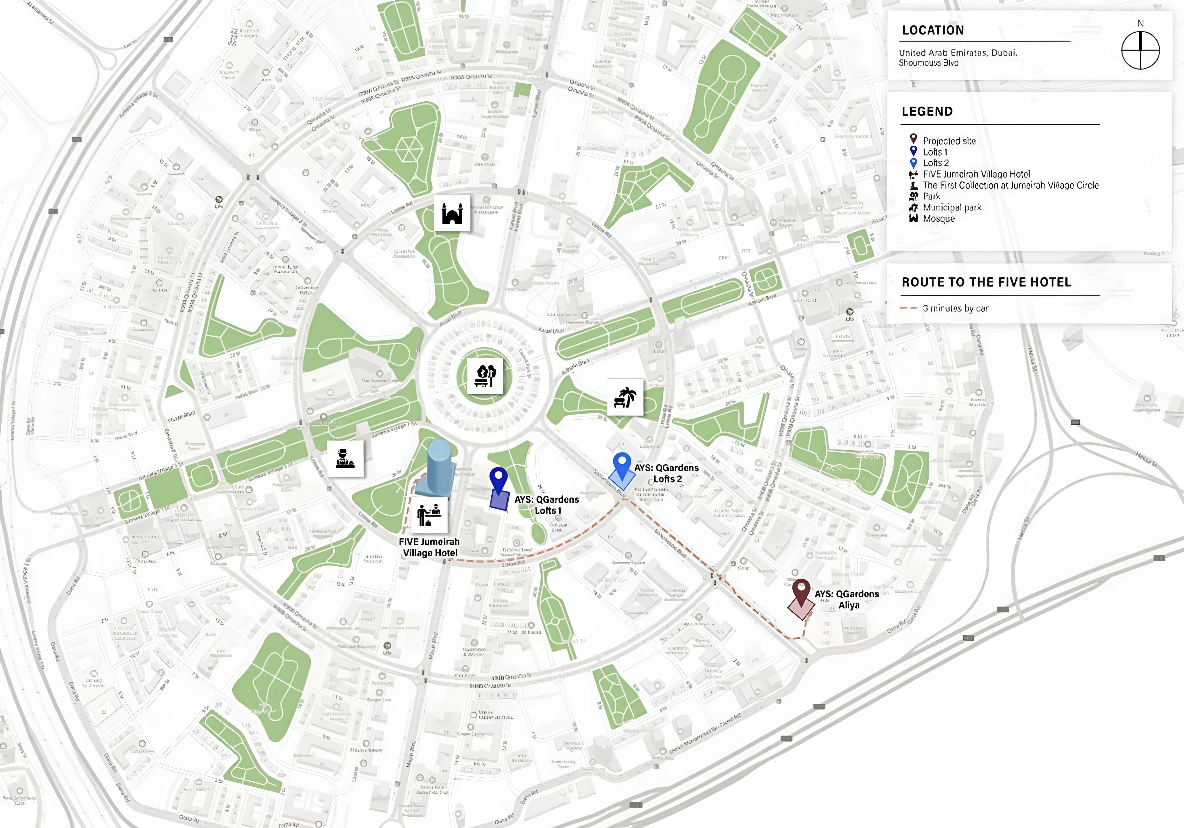 Nestled within the thriving Jumeirah Village Circle, Q Gardens Aliya benefits from a unique blend of tranquil community living and superb urban accessibility. JVC is renowned for its lush green spaces, family-friendly atmosphere, and a comprehensive range of amenities, all while providing seamless access to Dubai's major arteries – Al Khail Road and Sheikh Mohammed Bin Zayed Road. This prime positioning places you just 15 minutes from the glamour of Dubai Marina, 20 minutes from the iconic Downtown Dubai, and a convenient 25-minute drive to Dubai International Airport, ensuring you're always connected to the pulse of the city.