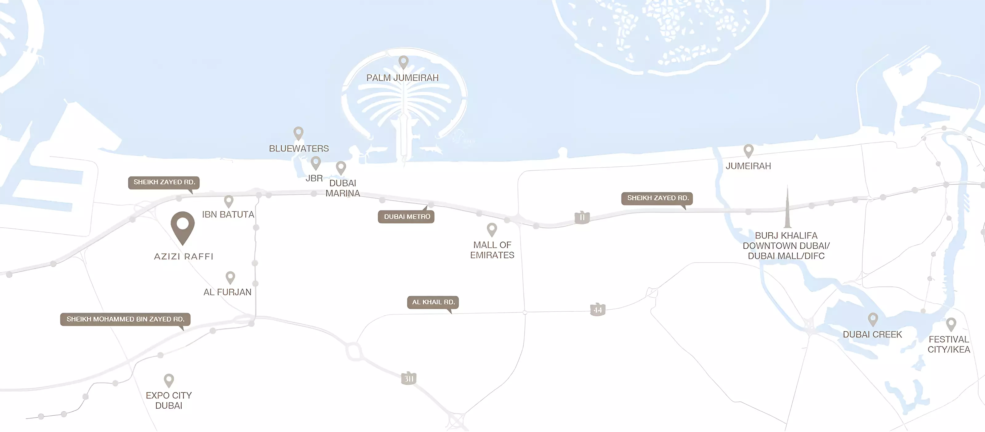 Azizi Raffi caters to diverse preferences with a meticulously designed range of residences. From efficient Studio apartments (30 sqm) ideal for young professionals or solo occupants, to spacious 1-bedroom (51 sqm) and generous 2-bedroom (114 sqm) units perfect for couples or small families, and expansive 3-bedroom (133 sqm) apartments providing ample space for larger families or those who love to entertain. Each home is crafted with contemporary finishes, intelligent layouts, and an emphasis on maximizing comfort and utility.
