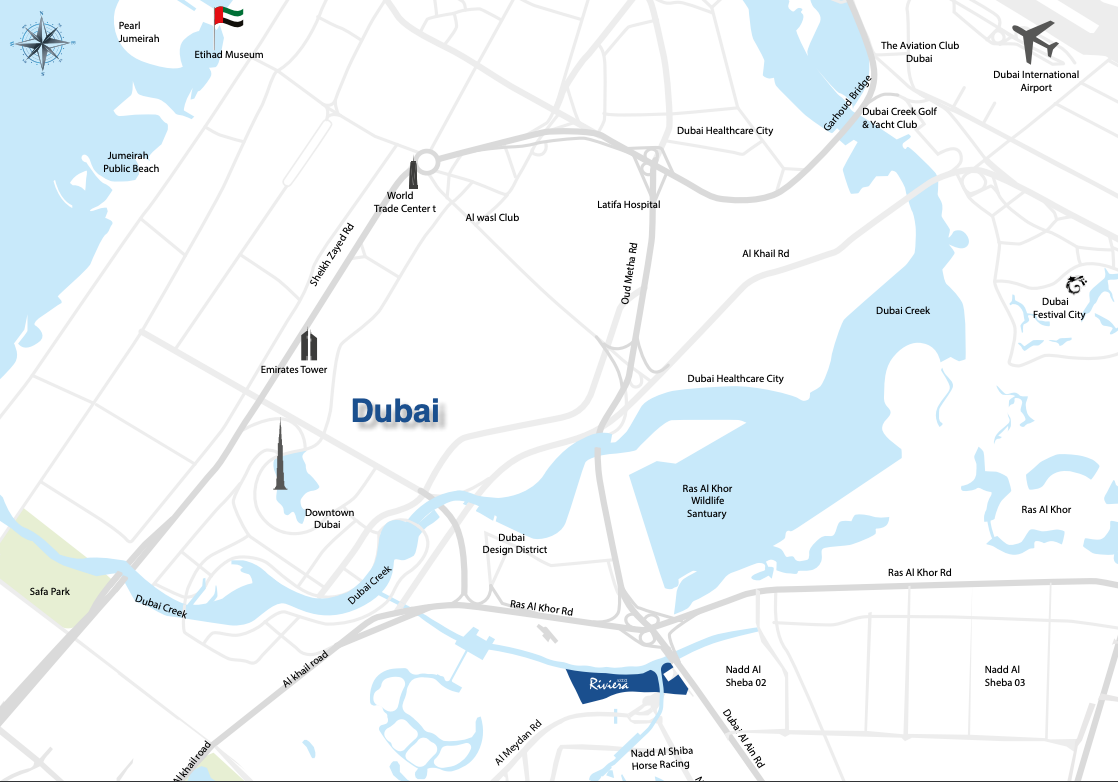 Strategically positioned within Mohammed Bin Rashid City (MBR City), AZIZI Riviera 39 offers exceptional connectivity. Residents will enjoy swift access to major arterial roads like Al Khail Road (1 minute), ensuring seamless journeys across the emirate. Downtown Dubai, with its world-class attractions, is merely a 10-minute drive, while the thrill of Meydan Racecourse is just 2 minutes away. Key destinations such as Meydan One Mall (3 minutes) and Dubai International Airport (15 minutes) are also conveniently close, placing you at the nexus of luxury, entertainment, and global connectivity.