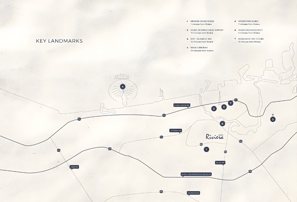 Strategically located within AZIZI Riviera, residents benefit from exceptional connectivity to Dubai's most prominent destinations. Quick access to Al Ain – Dubai Road (E66) and Ras Al Khor Road (E44) places the city’s business districts, leisure attractions, and cultural landmarks within easy reach. Enjoy being just 15 minutes from the iconic Burj Khalifa, 17 minutes from Palm Jumeirah, and a mere 20 minutes from Dubai International Airport. The proximity to Meydan One also means world-class retail, dining, and entertainment options are practically on your doorstep, offering the best of urban convenience without compromising on serenity.