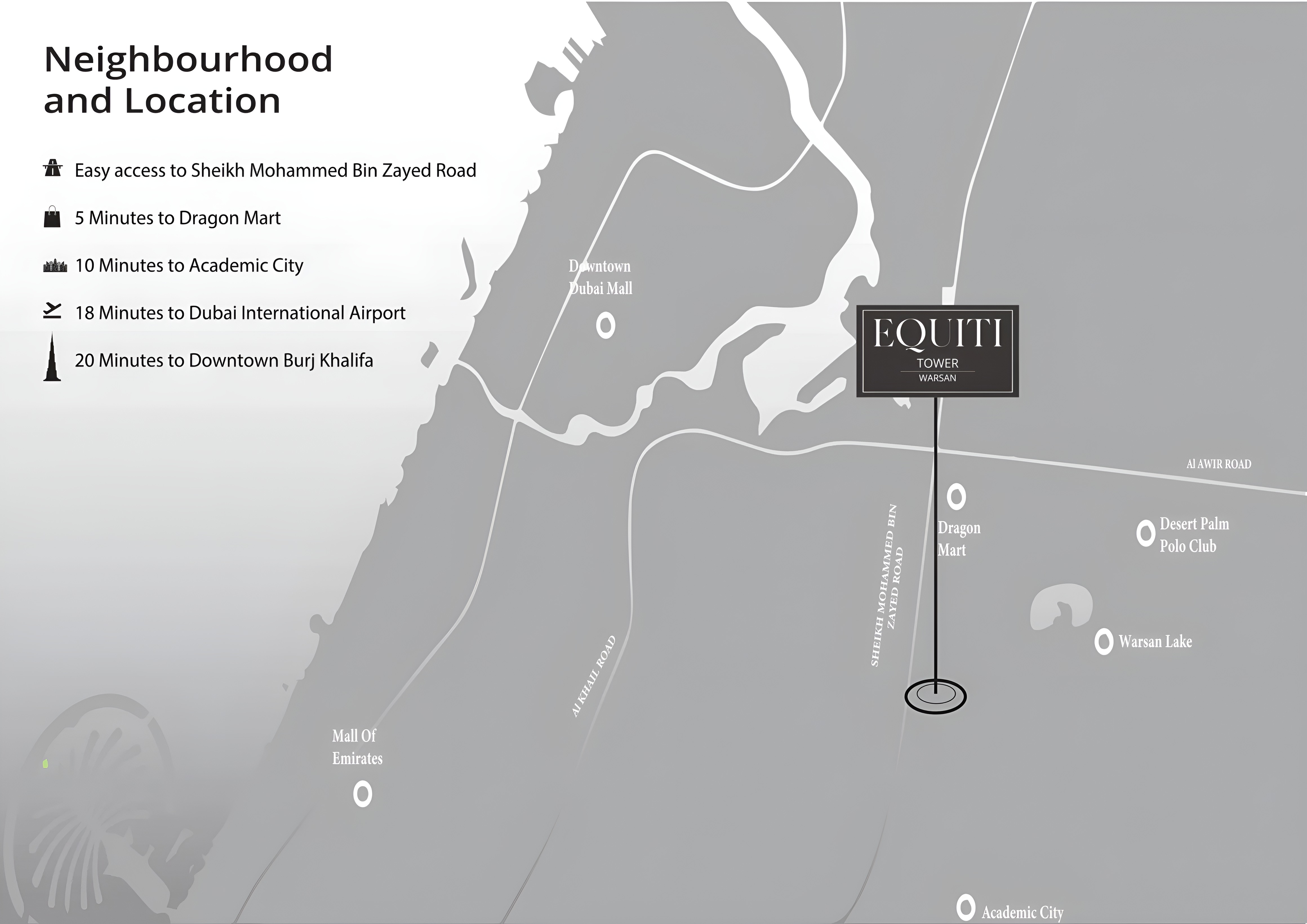 Strategically located in a thriving and rapidly growing district, Equiti Tower offers residents the best of urban connectivity and tranquil living. The area is experiencing significant development, promising enhanced infrastructure, accessibility, and appreciating property values. This prime positioning ensures that convenience is always at your doorstep, with easy access to major attractions, business hubs, and leisure destinations across Dubai.