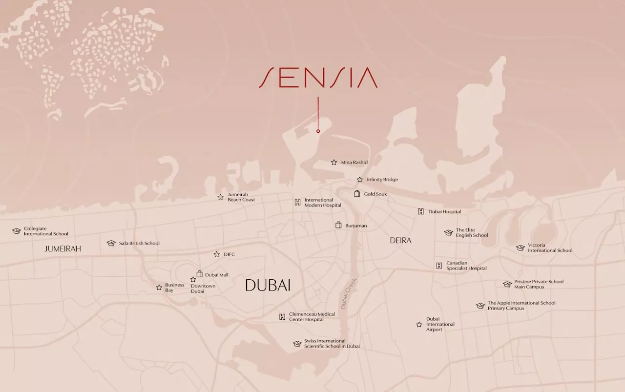 Strategically positioned within the vibrant Dubai Maritime City, Sensia offers residents direct waterfront access and captivating panoramic vistas of the Arabian Gulf. This prime location ensures seamless connectivity to Dubai’s bustling business hubs, world-class commercial districts, and iconic entertainment destinations. Enjoy the unique blend of a maritime-inspired lifestyle complemented by urban conveniences, with easy access to cultural landmarks, fine dining, and leisure attractions just moments away.
