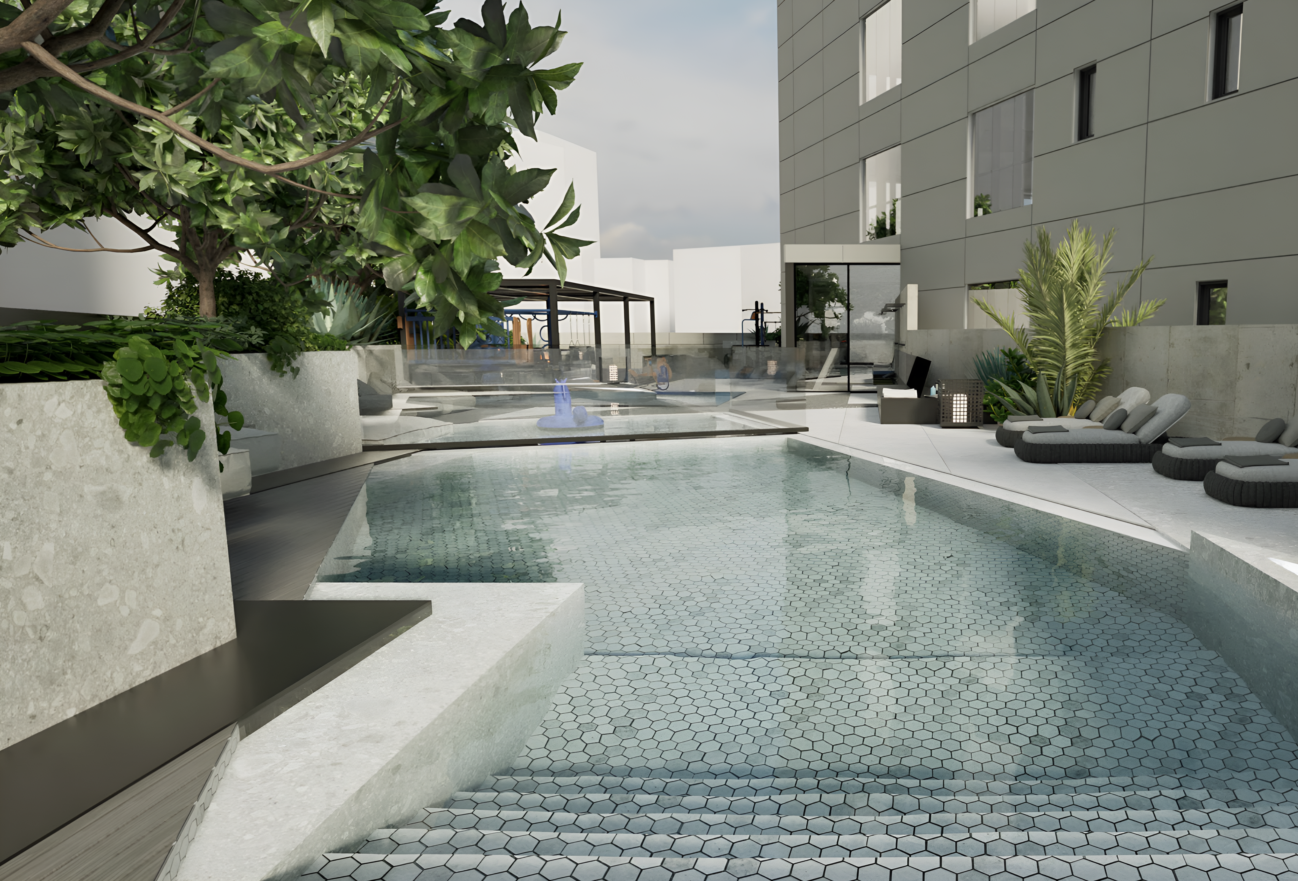 Esplora features an exquisite collection of thoughtfully designed studios, 1-bedroom, and 2-bedroom apartments, catering to diverse needs and lifestyles. Each residence is crafted to maximize natural light and space, integrating smart home features to elevate daily living. The development's architectural distinctiveness is evident in its geometric façade, while the interiors exude elegance with premium finishes, including luxurious Italian marble in shared spaces.