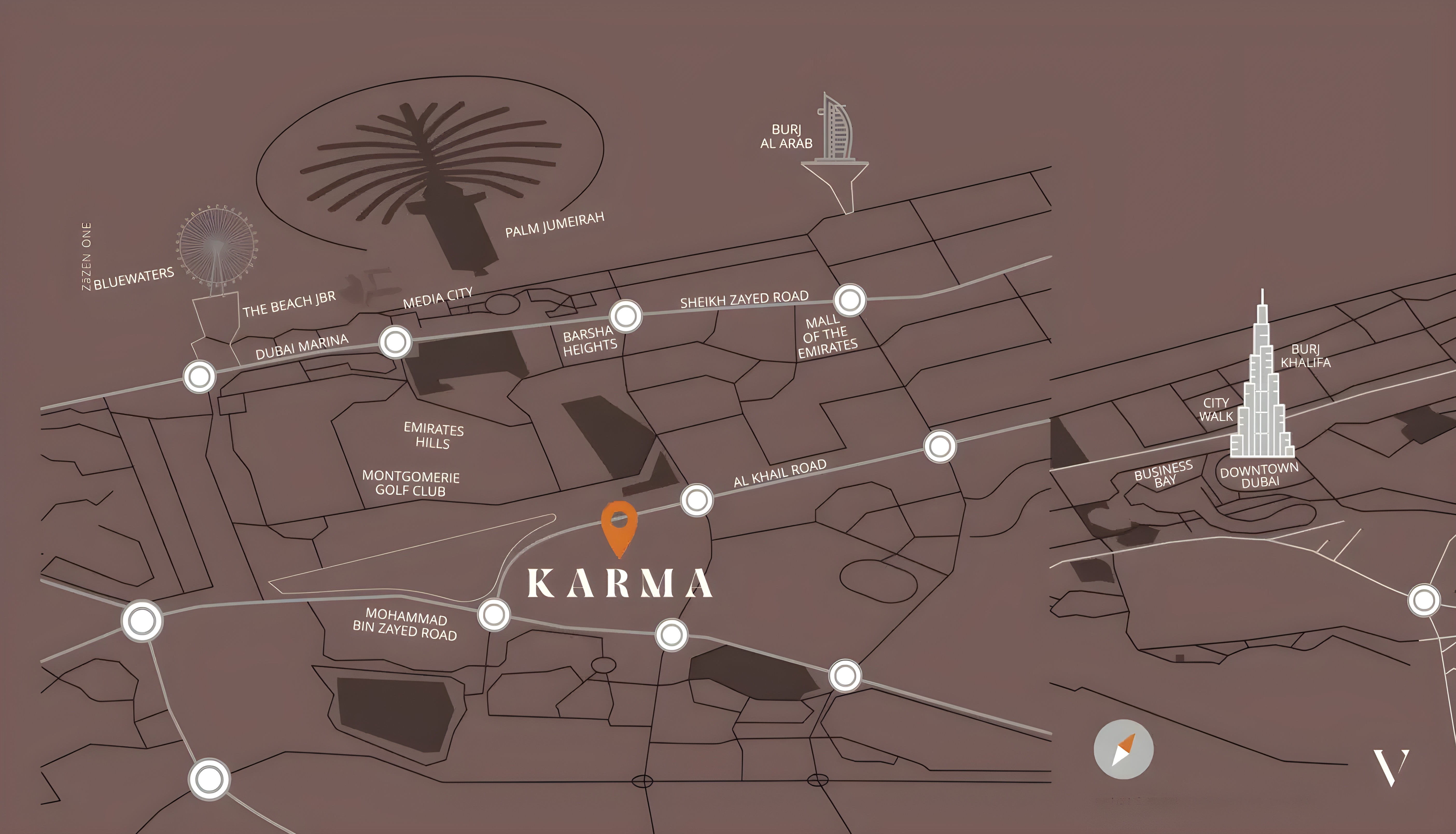 Strategically nestled in one of Dubai’s most dynamic and rapidly developing corridors, Karma Residences boasts a prime address in Liwan. This coveted location offers residents the perfect blend of serene residential ambiance and seamless connectivity to Dubai’s bustling epicenters. Enjoy swift access to iconic destinations like Downtown Dubai, the glamorous Dubai Marina, and key business districts, making daily commutes effortless. Proximity to Dubai International Airport is another significant advantage, ideal for frequent travelers. Beyond connectivity, Karma places you at the doorstep of renowned cultural landmarks, world-class shopping destinations, and diverse recreational facilities, ensuring every convenience from educational institutions to healthcare centers and retail outlets is within easy reach. Liwan’s meticulously planned infrastructure and strategic growth make it an undeniable magnet for families, professionals, and savvy investors.