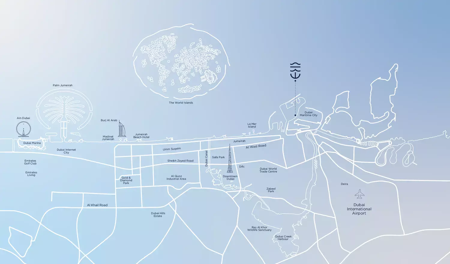 Strategically nestled in The Pier, a prime district within DMC, residents of The Pier Residences will enjoy seamless connectivity to Dubai's most iconic destinations. Imagine effortless commutes to the bustling Downtown Dubai, the glamorous Dubai Marina, and the pristine shores of Jumeirah Beach. This prestigious waterfront address offers a unique blend of tranquility and urban convenience, placing you at the nexus of business, leisure, and entertainment while providing a serene retreat from the city's pace.