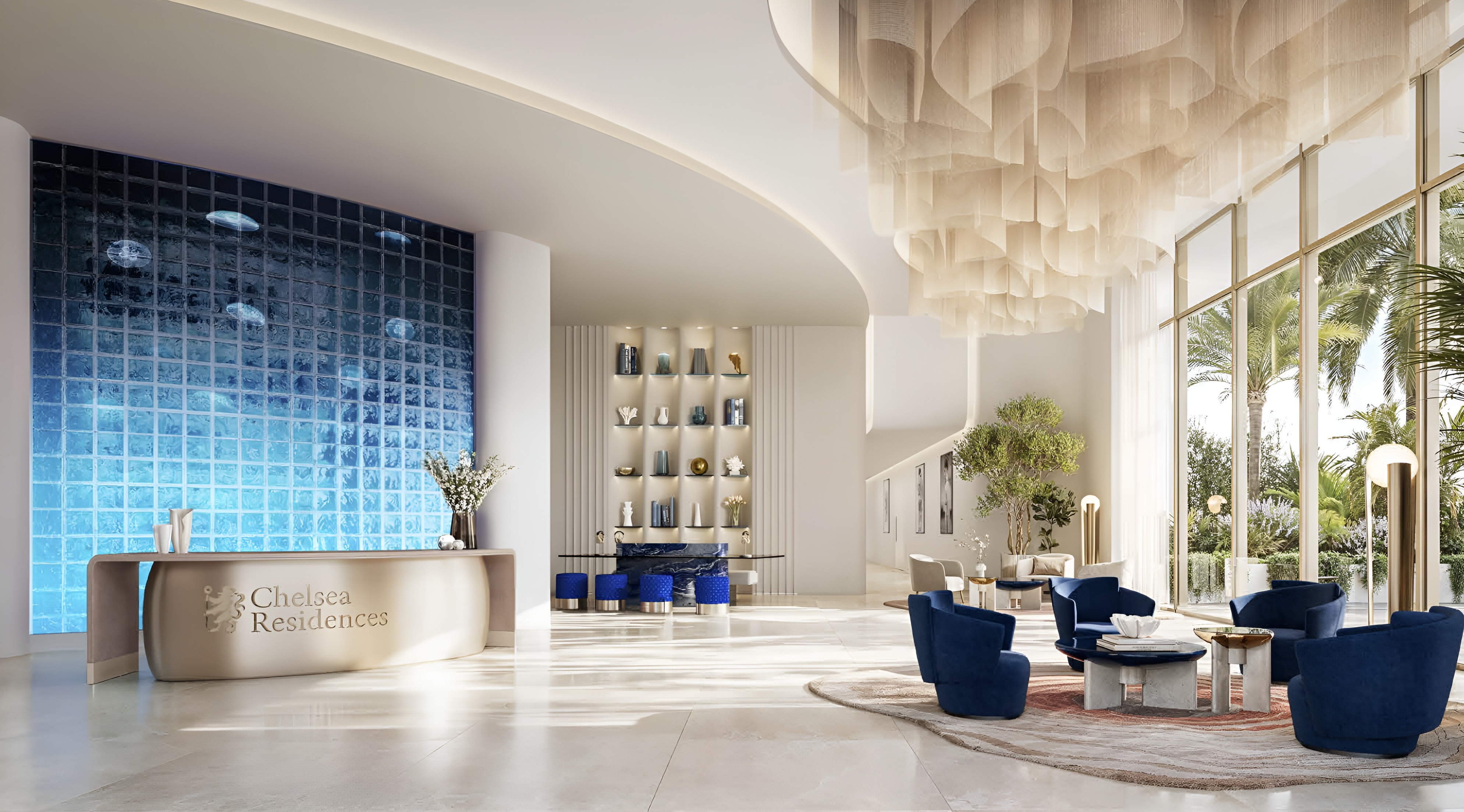 Chelsea Residences 2 is a testament to architectural innovation, where bold linear contours and elegant curves create a striking silhouette against the Dubai skyline. Expansive, edge-style glass façades frame breathtaking panoramic views of the sea and cityscape, ensuring every residence is bathed in natural light. Inside, the homes are meticulously designed for modern living. With impressive 3.4-meter floor-to-ceiling windows, spacious layouts are optimized for comfort and functionality, offering a refined sanctuary. Premium finishes, including polished stone, warm wood accents, and brushed metals, along with subtle Chelsea-inspired design cues in common areas, evoke a sense of understated luxury.