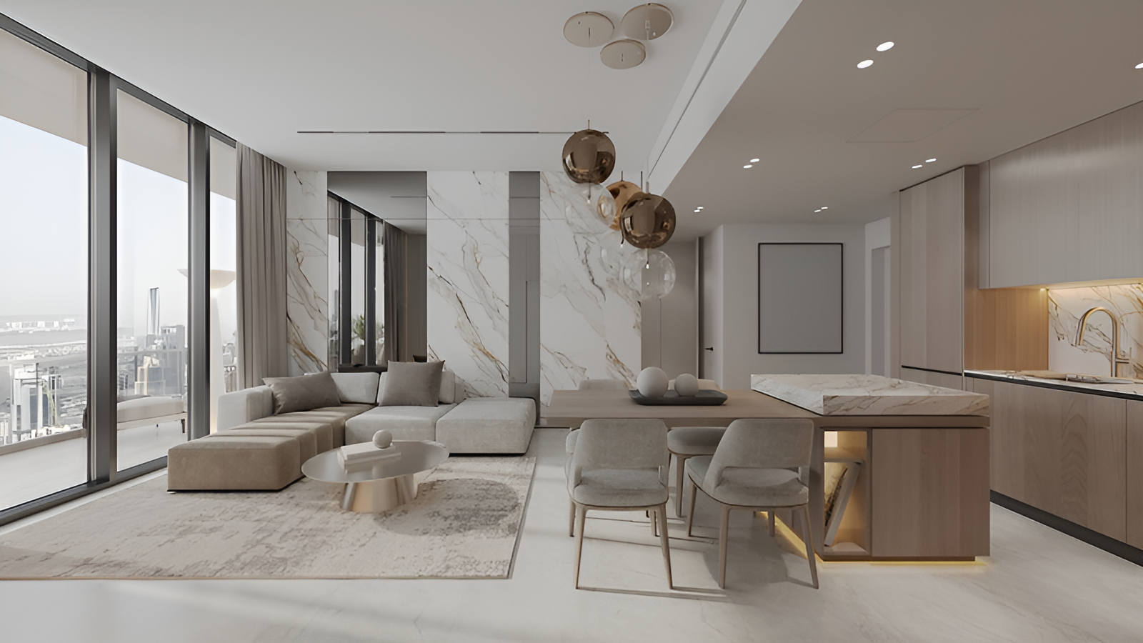 Explore a diverse range of living spaces tailored to various preferences, from efficient studios (37-38 sq m) to spacious one-bedroom (59-75 sq m) and expansive two-bedroom apartments (92-97 sq m). A flexible payment plan, comprising 20% down payment, 30% during construction, and 50% upon handover, makes acquiring your dream home remarkably accessible.