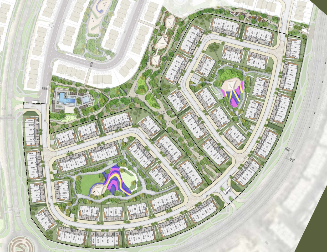 One of Mudon Al Ranim's most captivating features is its thoughtful placement around the perimeter of a lush green park. This guarantees residents uninterrupted, picturesque views of the verdant landscape, fostering a profound sense of peace and relaxation. Imagine waking up to serene park vistas and enjoying evening strolls amidst nature, right at your doorstep.
