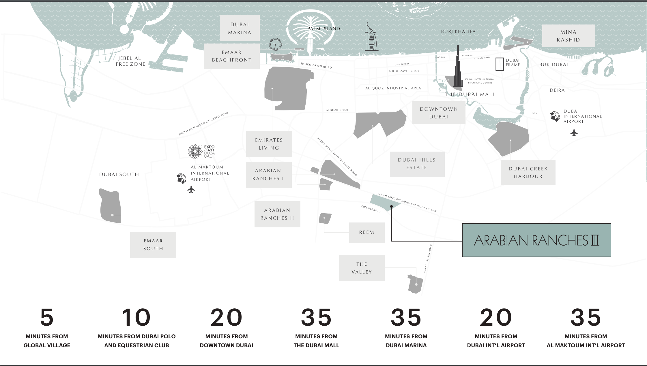 Caya boasts a strategic position within Arabian Ranches 3, offering residents the best of both worlds: serene suburban living with effortless access to Dubai's vibrant urban core. Its proximity to major thoroughfares like Emirates Road and Sheikh Mohammed Bin Zayed Road ensures swift commutes to key destinations. Residents are mere minutes away from global landmarks such as Expo City Dubai, the expansive Dubai Hills Mall, and the invigorating Al Qudra Cycling Tracks. Furthermore, Caya’s location offers convenient access to the upcoming largest airport in the world, bolstering its future investment appeal. This unique blend of seclusion and connectivity ensures a tranquil home environment without sacrificing the convenience of city life.