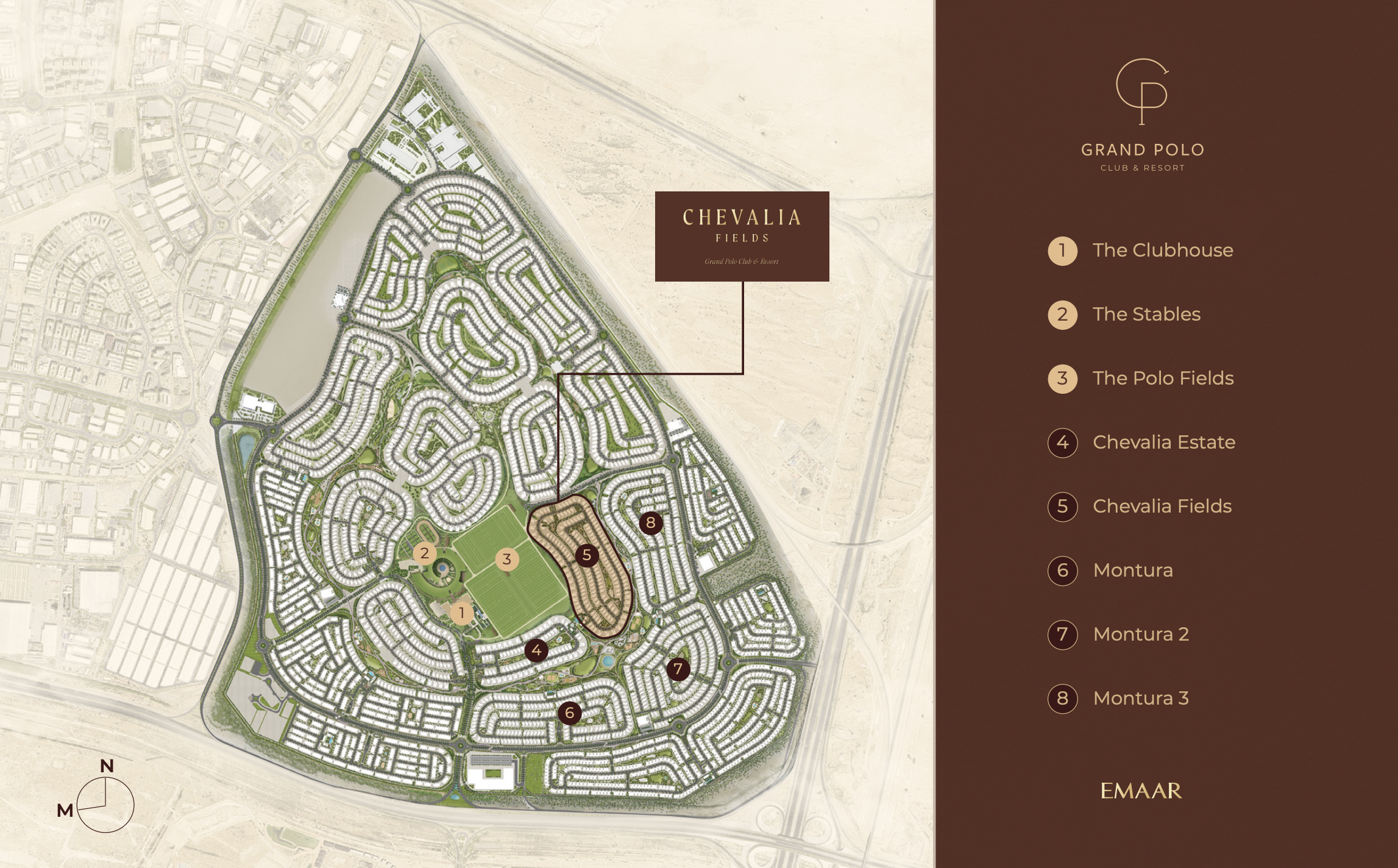 Discover Chevalia Fields at Grand Polo Club & Resort, an exquisite collection of 4 and 5-bedroom villas by Emaar Properties. Nestled within 340,000 square meters of verdant landscapes in Dubai Investment Park (DIP), this exclusive community masterfully blends equestrian heritage with contemporary luxury, offering a lifestyle of unparalleled freedom, grace, and sophistication.