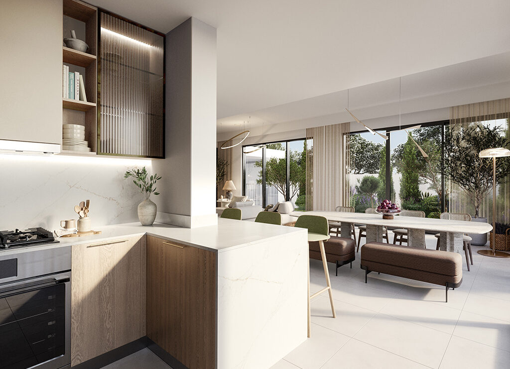 Golf Lane presents an exclusive selection of 4- and 5-bedroom villas, each a testament to contemporary design and architectural elegance. Maximizing plot space within a low-density setting, these residences offer expansive living areas bathed in natural light. Floor-to-ceiling windows and generous private balconies and patios blur the lines between indoor comfort and the lush outdoor golf course scenery, transforming every view into a living masterpiece. Interiors boast warm, inviting tones, echoing the serene surrounding landscapes.