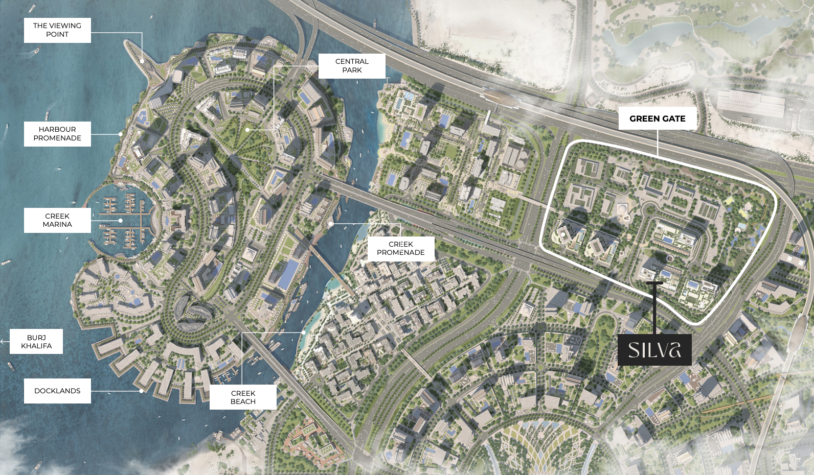 Silva's prime location within Dubai Creek Harbour offers exceptional accessibility. Residents will enjoy quick commutes to key city landmarks: just 12 minutes to Dubai International Airport, 15 minutes to Dubai Festival City, 18 minutes to Dubai Design District (D3), 20 minutes to Jumeirah Beach, and 25 minutes to Dubai Marina. Situated along Ras Al Khor Road, the development ensures effortless connections to Dubai’s extensive highway and transport networks.