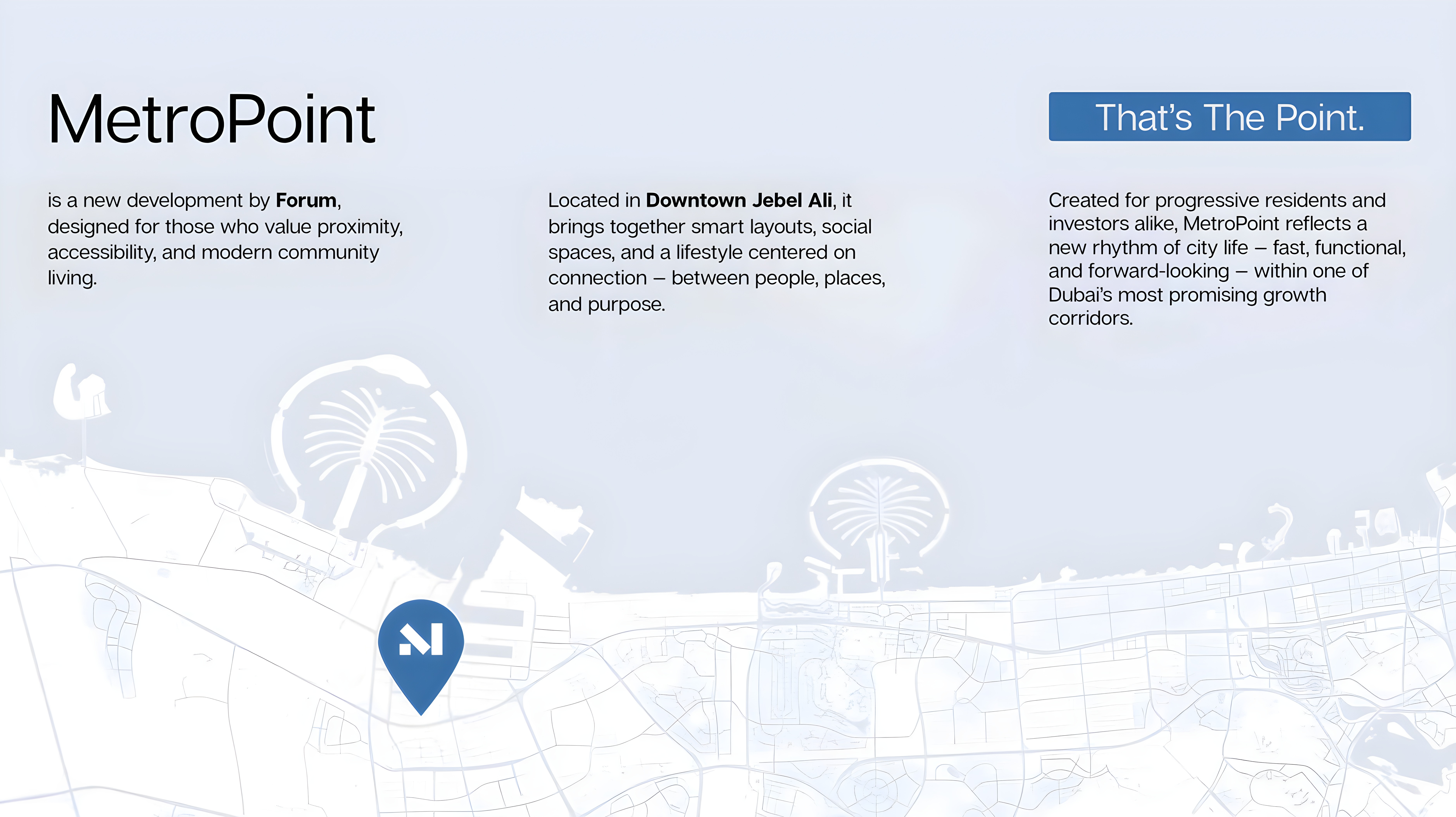 Discover Metropoint, an exceptional off-plan development by Forum Group, poised to redefine modern urban living in the vibrant heart of Downtown Jebel Ali. This meticulously designed mixed-use project seamlessly integrates contemporary architecture, a rich array of premium amenities, and a strategic location, crafting an unparalleled lifestyle opportunity for discerning residents and savvy investors alike.