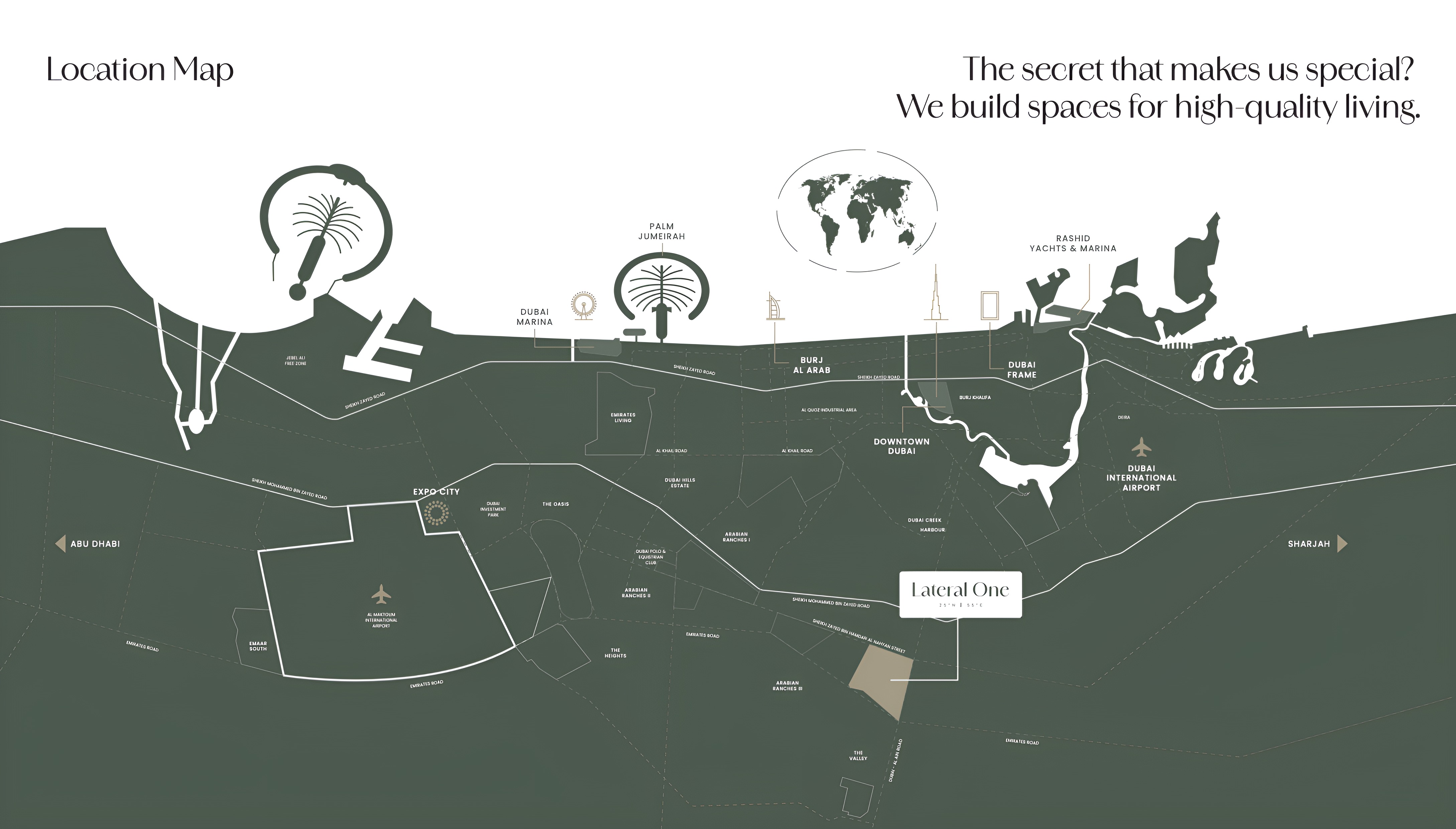 Strategically positioned in the heart of DLRC, Lateral One offers residents the best of both worlds: tranquil suburban living combined with effortless connectivity to Dubai’s key business hubs, leisure destinations, and educational institutions. Its prime location ensures easy access to major road networks, placing world-class amenities and attractions within a short drive, while benefiting from the projected growth and appreciation of this dynamic master-planned community.
