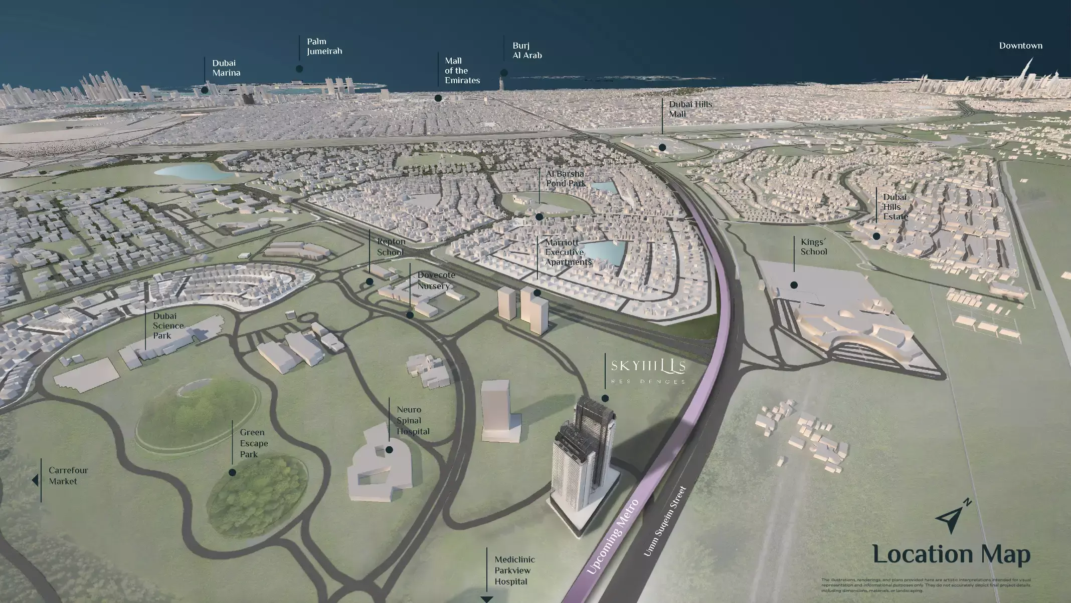 Strategically situated within the thriving Dubai Science Park, Skyhills Residences Phase 3 offers residents the perfect balance of serene suburban tranquility and dynamic urban connectivity. Its advantageous location ensures effortless access to Dubai’s key business districts, world-class educational institutions, and leading healthcare facilities. Excellent road networks provide seamless commutes across the city, while panoramic views of the cityscape and lush green landscapes enhance the tranquil living environment.