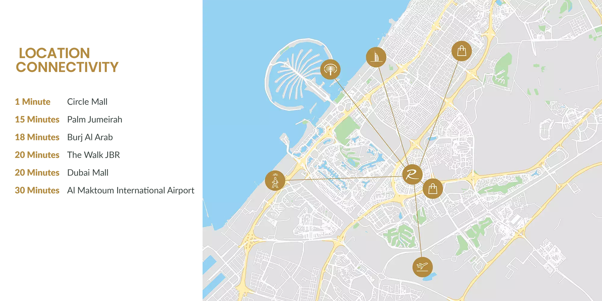 Strategically nestled within JVC, Roma Residences grants residents prime access to a thriving community renowned for its exceptional connectivity and an abundance of lifestyle conveniences. A stone's throw away, you'll find a plethora of retail outlets, gourmet dining establishments, and recreational facilities catering to every need. Furthermore, the development boasts enviable proximity to Dubai's most iconic landmarks, including the pristine Burj Al Arab Beach and the breathtaking Palm Jumeirah, elevating its allure as a highly coveted address.