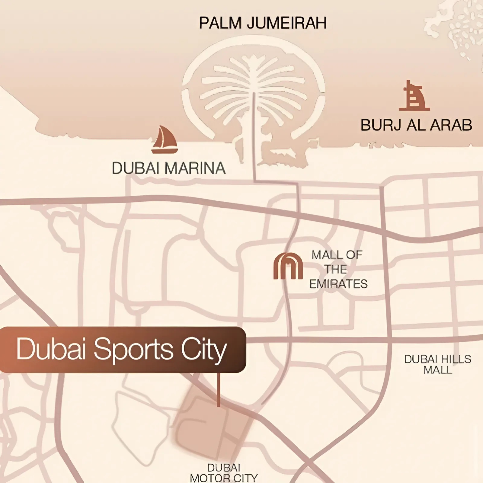 Antalya Residences boasts a prime location within Dubai Sports City, striking an ideal balance between tranquil residential charm and unparalleled urban connectivity. Its strategic positioning ensures effortless access to major highways, placing Dubai’s most iconic destinations within easy reach. Residents will benefit from being just 15 minutes from the vibrant Dubai Marina, 20 minutes from the bustling Downtown Dubai, 25 minutes from Dubai International Airport, and 30 minutes from the prestigious Palm Jumeirah. The immediate vicinity is rich with amenities and attractions, including the Dubai Autodrome, Els Club Golf Course, ICC Academy, numerous sports facilities, extensive shopping centers, and reputable international schools.