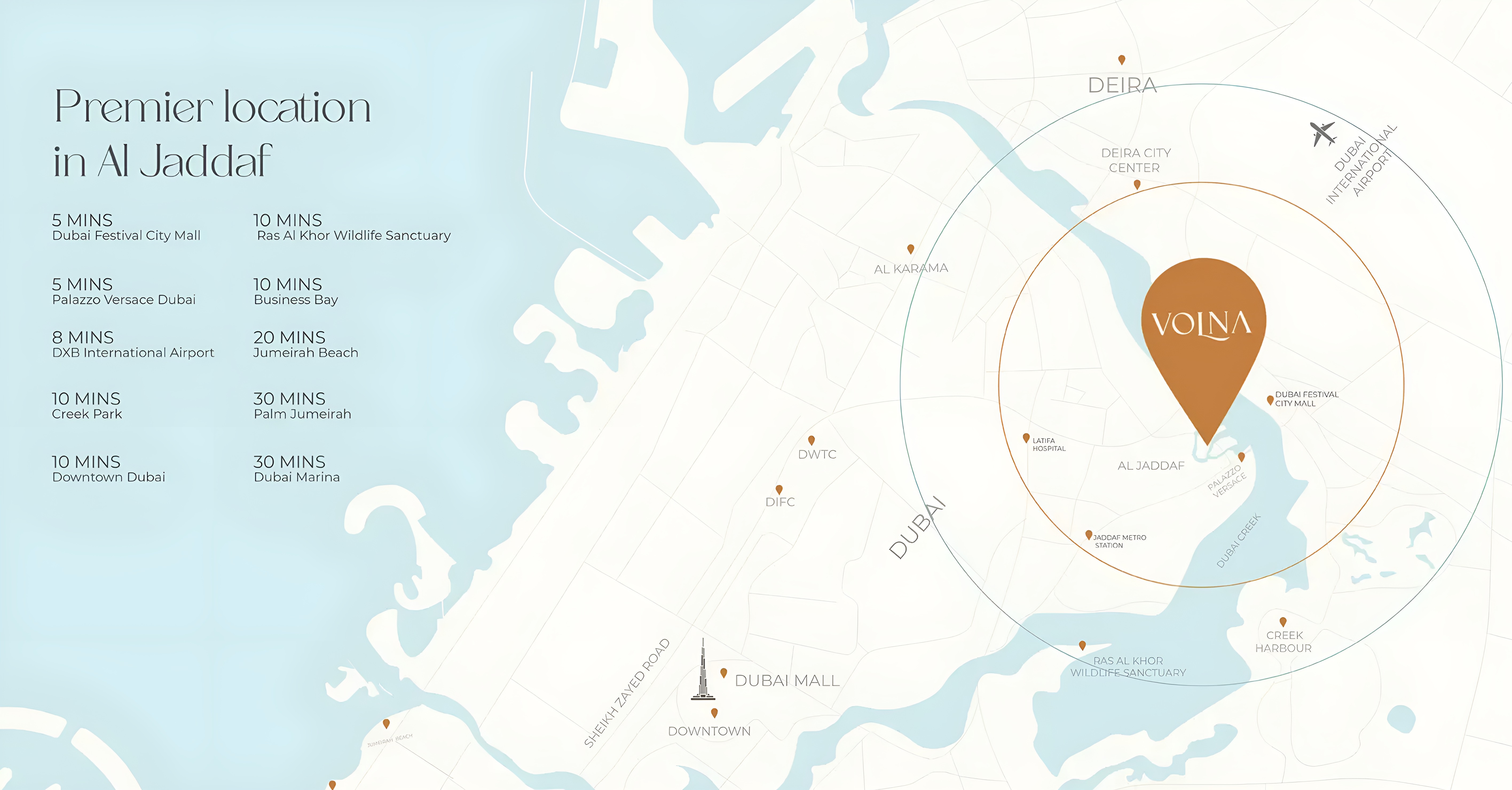 Volna's strategic location along the picturesque shorelines of Culture Village grants residents unparalleled connectivity to Dubai's most iconic destinations. Enjoy a swift 25-minute drive to the majestic Burj Al Arab or a 30-minute journey to the vibrant Walk at JBR, where seaside activities and world-class dining await. Its central position ensures convenient access to Dubai's business hubs and leisure attractions, making it an ideal choice for those seeking both urban dynamism and tranquil waterfront living.