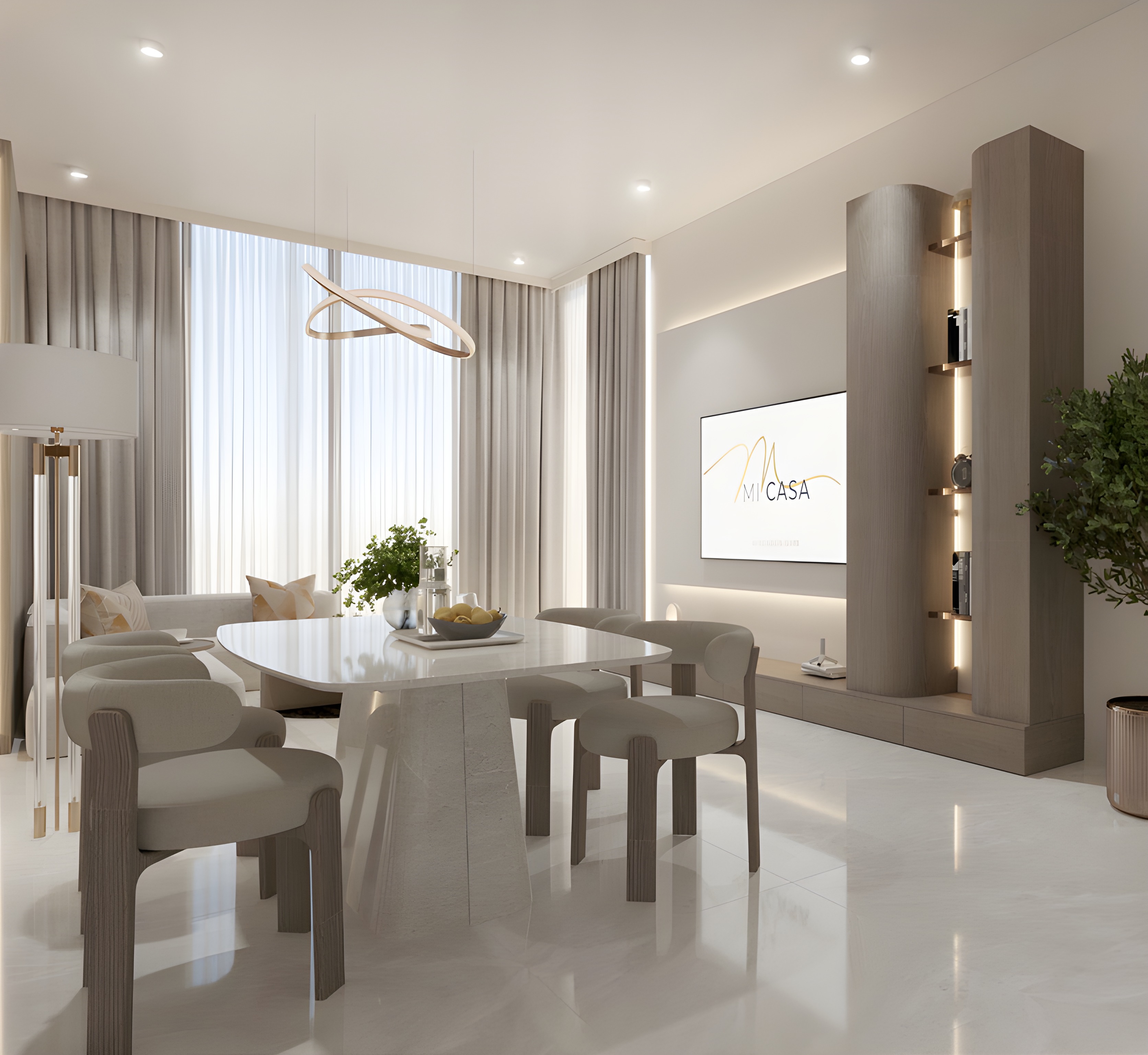 Mi Casa stands as a testament to architectural excellence, blending sleek, contemporary lines with softening curved elements to create a distinctive visual presence. The building’s durable façade materials are thoughtfully chosen to withstand Dubai’s climate, while integrated balconies extend living spaces outdoors, inviting natural light and scenic views. Inside, each apartment is a sanctuary of fluid, functional design. Open-plan layouts offer flexible spaces ideal for family life and entertaining. Features include custom wardrobes maximizing space efficiency, state-of-the-art modern kitchens with elegant finishes, and premium bathrooms equipped with walk-in showers and contemporary fixtures, creating a spa-like retreat. Every detail, from carefully selected lighting to high-quality hardware, enhances the sophisticated ambiance.