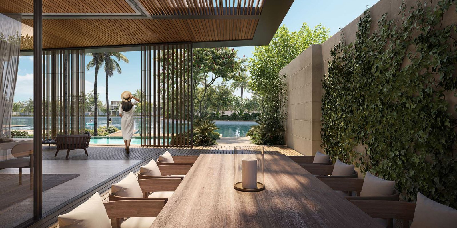 Plagette 32 showcases a meticulously curated collection of 32 bespoke properties, designed to cater to discerning tastes. Choose from 28 elegant Club Villas, expansive three-story townhomes offering up to five bedrooms, featuring impressive double-volume ceilings, skylights, and a private elevator for ultimate convenience. Alternatively, discover the unparalleled charm of four exquisite Water Bungalows, designed as resort-style villas with four bedrooms, featuring expansive living areas, secluded private gardens, and unique indoor garden courts that create a seamless indoor-outdoor flow and tranquil ambiance. Each property boasts a dedicated roof lounge and terrace, providing breathtaking panoramic views of the adjacent crystal lagoon and the lush, expansive terrain.