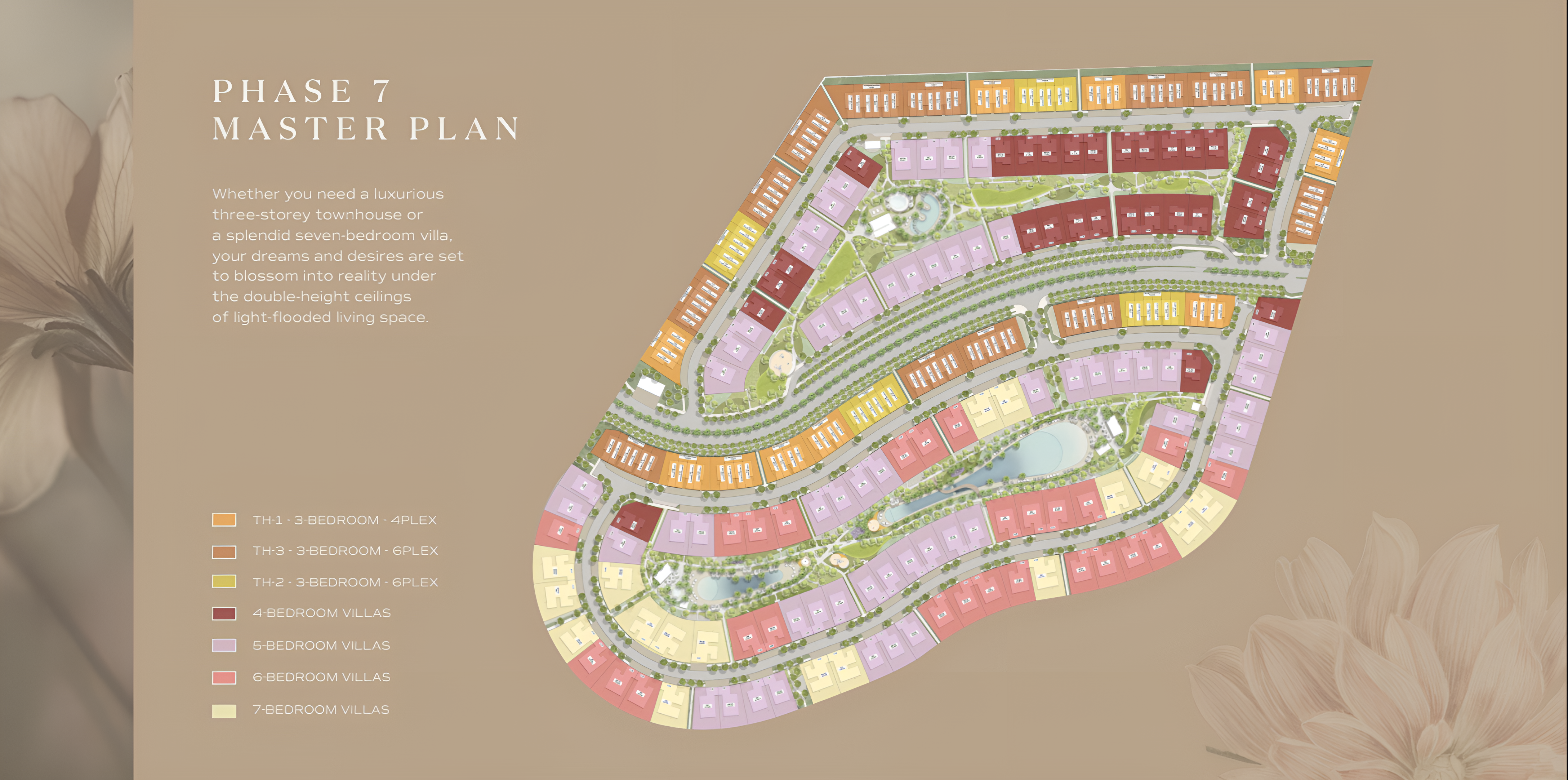 The residences at Nad Al Sheba Gardens Phase 7 are meticulously designed to cater to discerning tastes. Choose from exquisitely crafted 3-bedroom townhouses, featuring private gardens and spacious terraces, starting from AED 4,430,000. For those desiring grander spaces, the development offers luxurious villas with 4 to 7-bedroom layouts, some boasting expansive living areas and private swimming pools. Additionally, exclusive penthouses present panoramic views of the captivating community and Dubai’s iconic skyline.