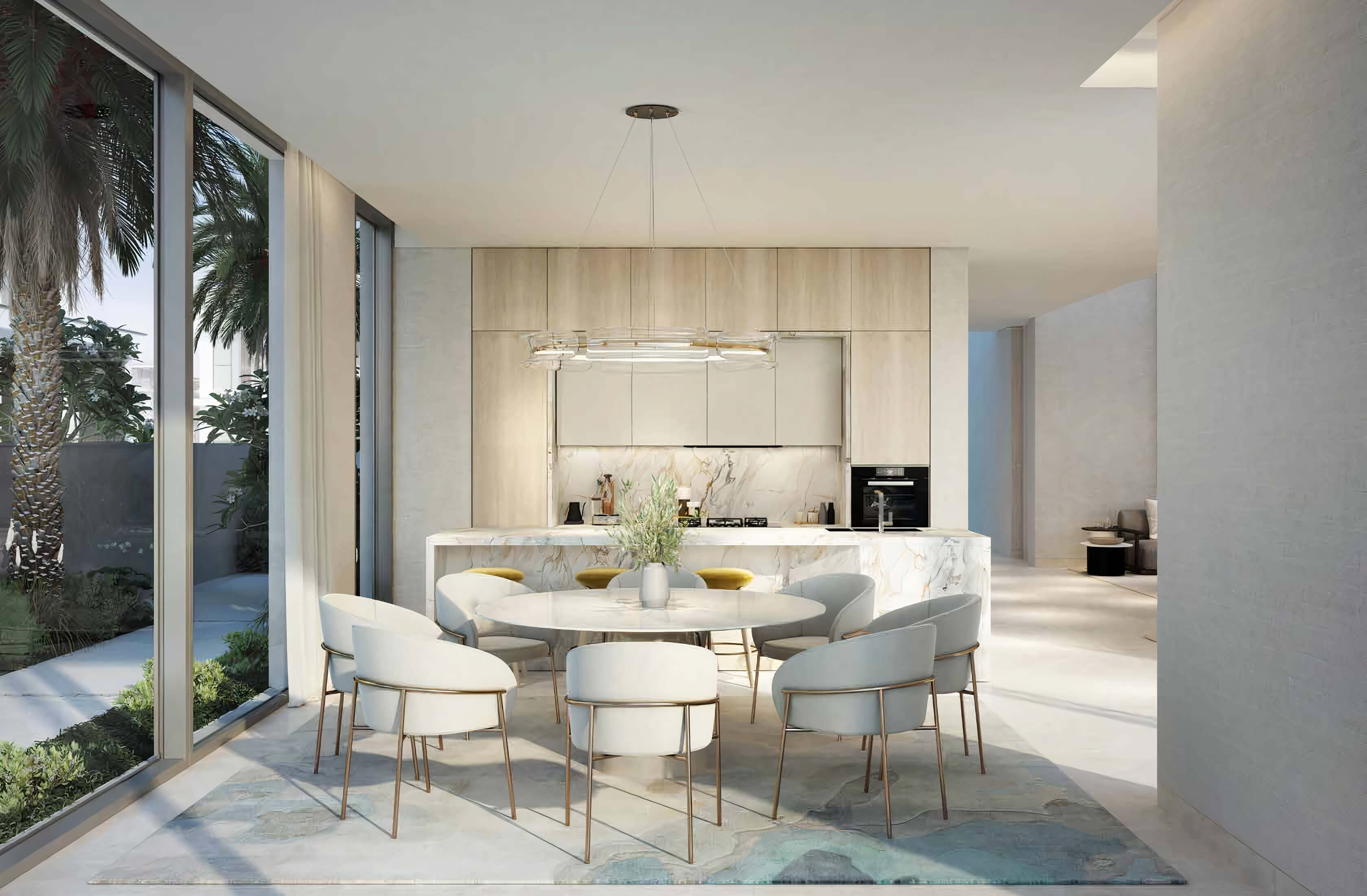 Nestled on the serene Frond P, these exquisite 6-bedroom villas span an expansive 724 square meters, offering magnificent living spaces complemented by breathtaking sea views. Each residence is a sanctuary of sophistication, providing direct access to pristine private beaches, allowing residents to immerse themselves in an idyllic coastal lifestyle. The design harmonizes contemporary elegance with the natural beauty of its surroundings, ensuring every moment spent here is one of tranquility and grandeur.
