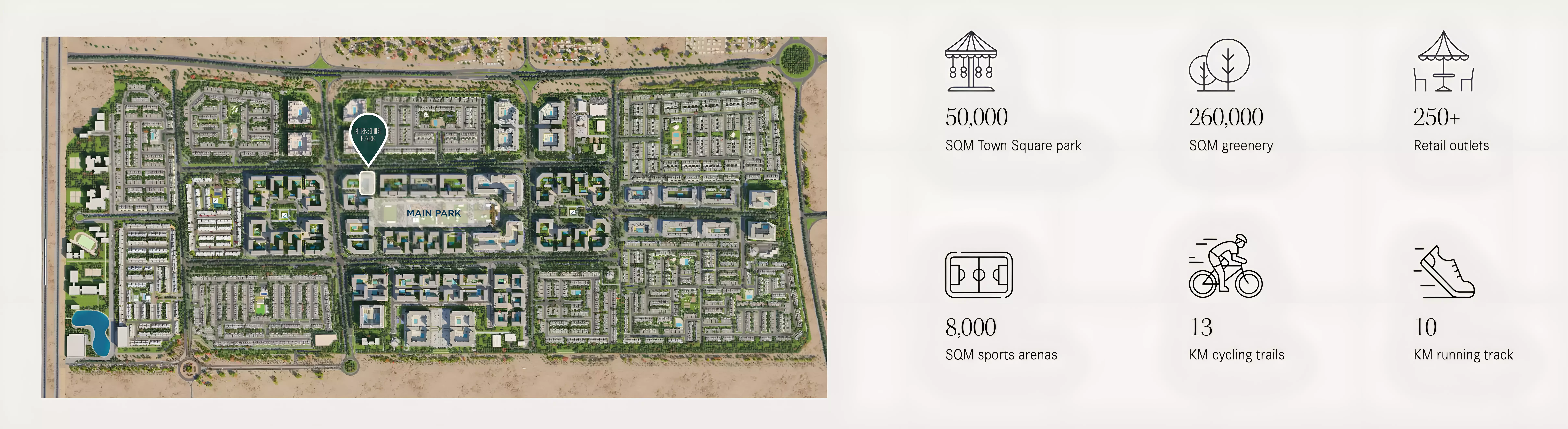 Nestled within the vibrant, master-planned landscape of Town Square Dubai, Berkshire Park benefits from an enviable location that marries unparalleled convenience with picturesque surroundings. Residents will enjoy strategic access to Dubai's major arterial roads, including Al Qudra Road and Sheikh Mohammed Bin Zayed Road, ensuring swift connectivity to the city’s most iconic destinations. Downtown Dubai, the bustling Dubai Marina, and Dubai International Airport are all just a short drive away. Furthermore, the development's proximity to top-tier schools, world-class hospitals, and an array of retail centers guarantees a comfortable and effortlessly convenient daily life.