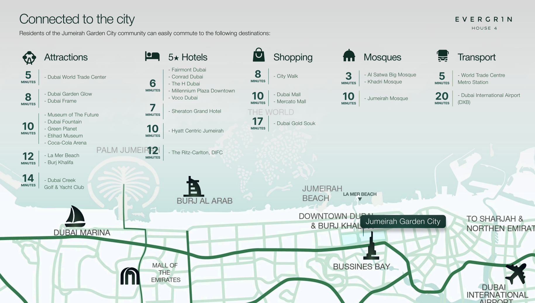 Evergr1n House 4 boasts an unparalleled central location that guarantees both exceptional accessibility and a superior lifestyle. Its enviable proximity to Sheikh Zayed Road ensures effortless connectivity to key Dubai destinations. Residents are just moments away from the bustling business and entertainment hubs of Downtown Dubai, the picturesque waterfront allure of Dubai Marina, and the convenience of Dubai International Airport. The surrounding neighbourhood offers a perfect blend of urban vibrancy and peaceful greenery, with easy access to premier shopping destinations, retail hubs, top-tier schools, and universities. This makes Evergr1n House 4 an ideal address for discerning professionals, growing families, and astute investors seeking a central yet tranquil urban retreat.