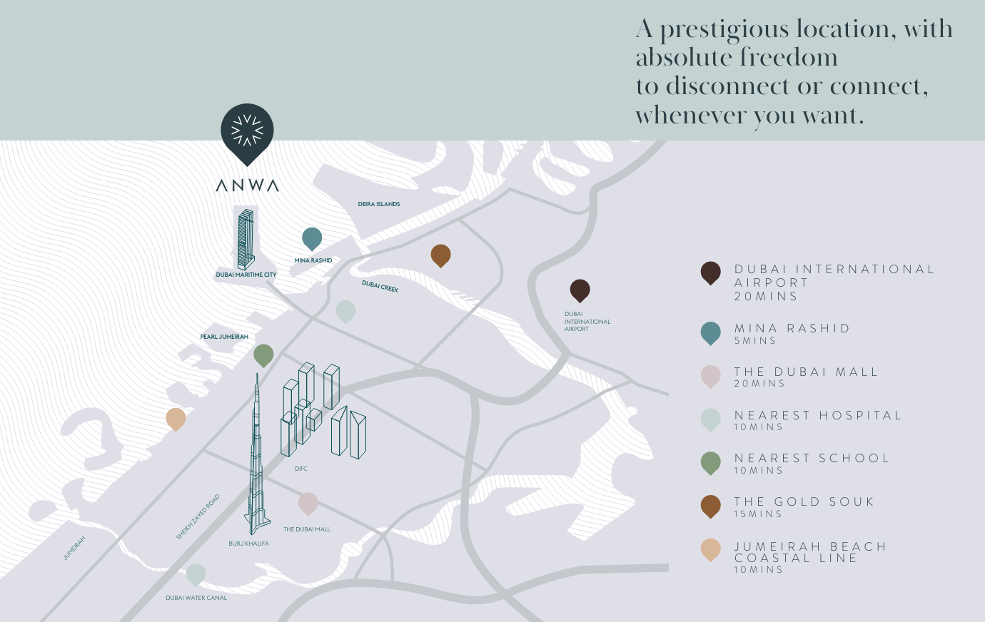 Nestled in the heart of Dubai Maritime City, Anwa Phase 2 boasts a strategic location that perfectly balances urban connectivity with tranquil seaside charm. Residents will enjoy seamless access to Dubai's most iconic destinations, including the vibrant Downtown Dubai, the world-renowned Dubai Mall, and the dynamic dining and entertainment hub of Jumeirah Beach Residence. Yet, it remains a serene retreat, providing an escape from the city's hustle without sacrificing convenience. The rapidly developing Dubai Maritime City itself is emerging as a prime residential and investment hub, making Anwa Phase 2 a compelling choice.