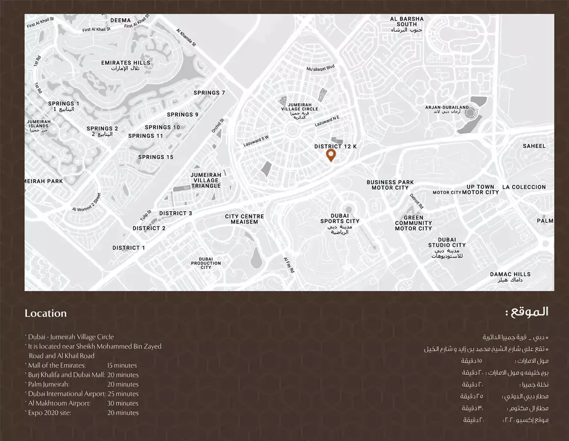 Nestled in JVC, Maison Elysee 2 benefits from one of Dubai's most sought-after residential districts, known for its strategic location and community-centric environment. Residents will enjoy seamless connectivity to major road networks, granting effortless access to Dubai's iconic landmarks, business hubs, and leisure destinations, including Downtown Dubai, Dubai Marina, and Expo City. JVC itself is a self-contained community boasting lush parks, retail outlets, schools, and healthcare facilities, ensuring every convenience is within easy reach.