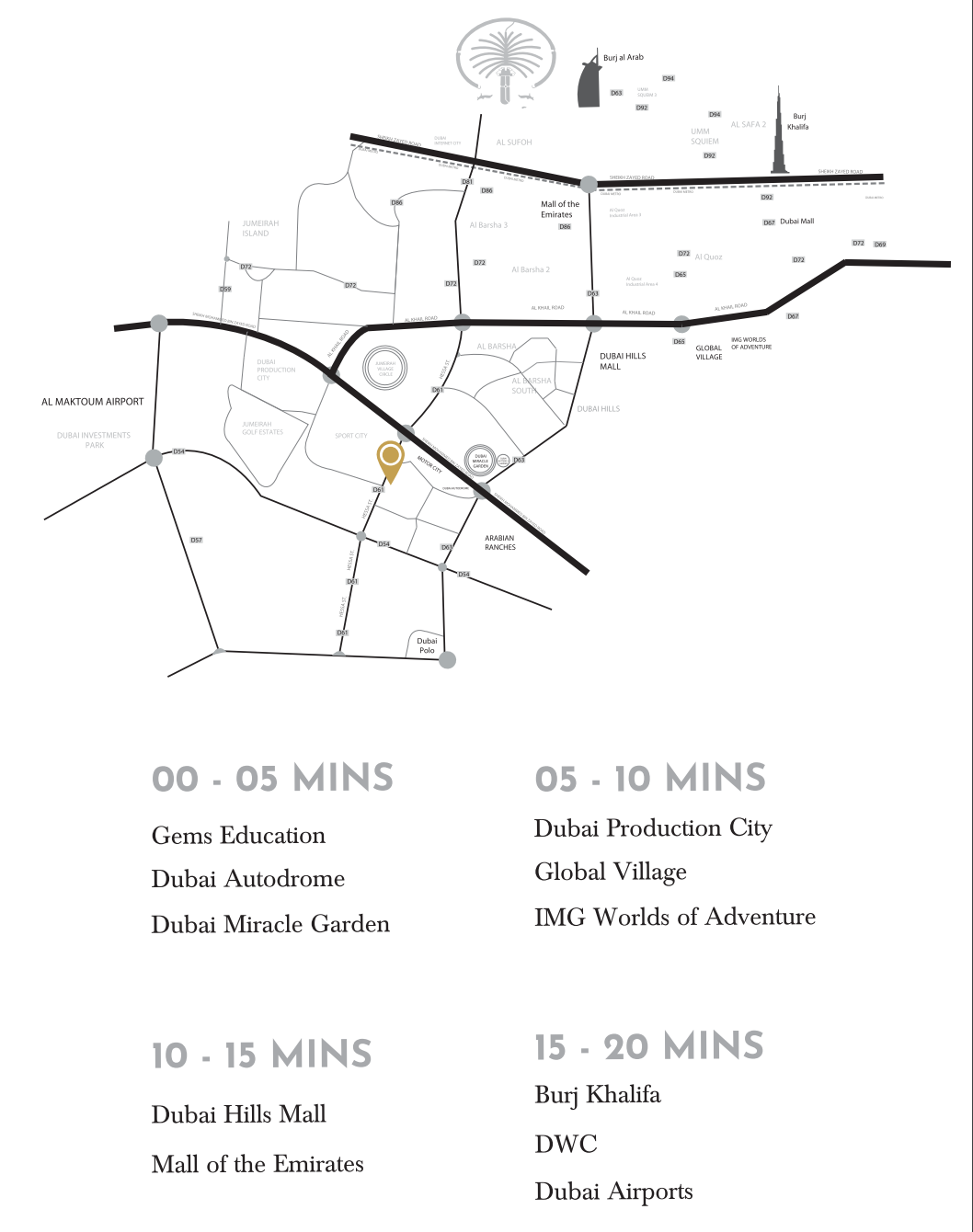 Strategically nestled amidst Dubai's dynamic landscape, Samana Golf Avenue provides residents with a serene escape while ensuring unparalleled connectivity. Its prime location grants effortless access to five world-class golf courses, leading healthcare facilities, reputable international schools, and major business districts like Downtown Dubai. This makes it an ideal choice for professionals and families seeking a balanced lifestyle that seamlessly integrates work, education, and leisure.