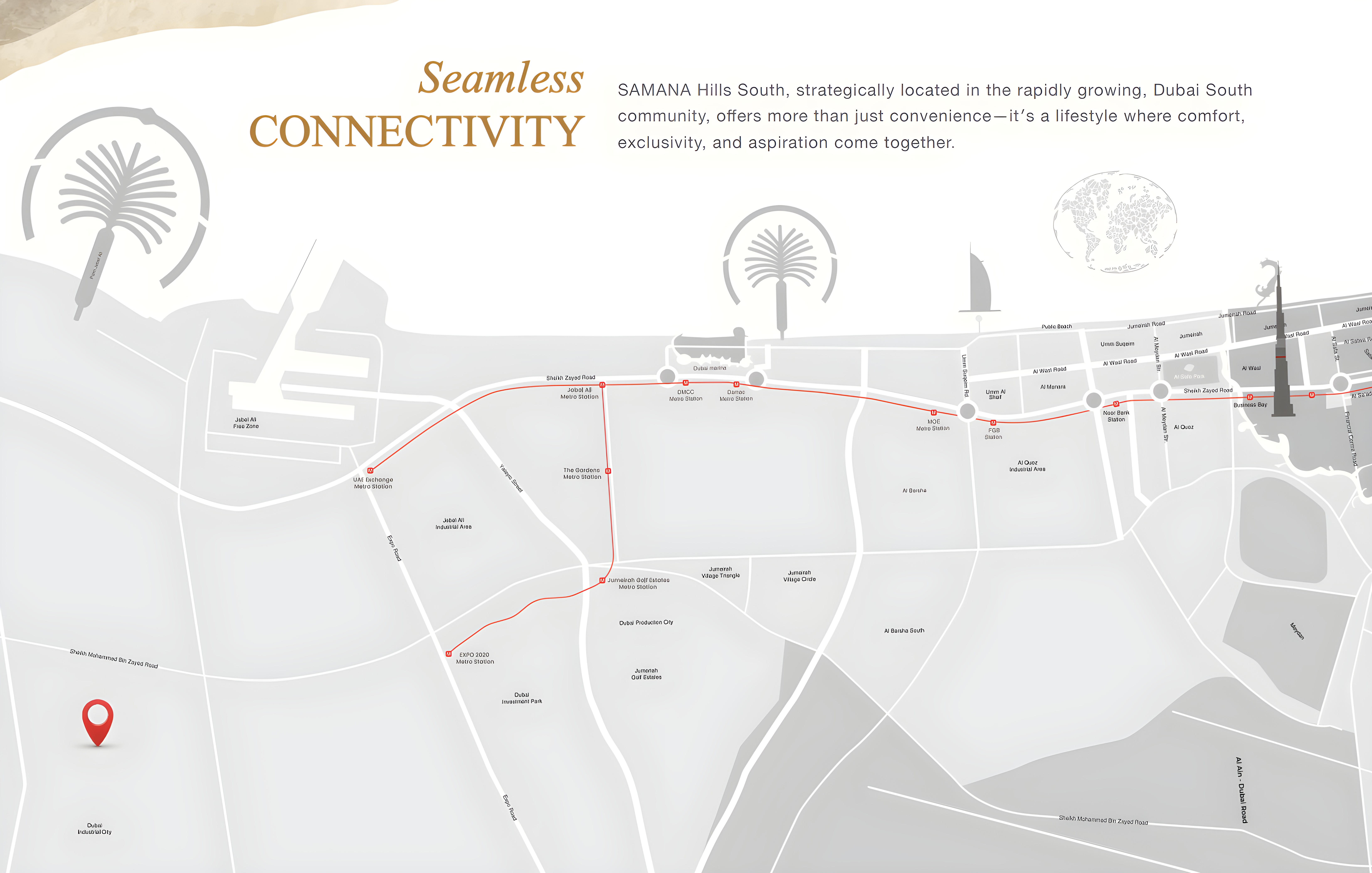 Strategically nestled within Dubai Industrial City, Samana Hills South offers residents the coveted advantage of urban connectivity coupled with serene residential tranquility. This rapidly developing corridor is emerging as a dynamic hub for business, logistics, and manufacturing, ensuring continuous infrastructure growth and robust long-term investment potential. Residents benefit from seamless access to major employment centers, top-tier educational institutions, and healthcare facilities, complemented by well-developed transportation networks and a growing array of retail and entertainment options. The location promises both convenience for daily living and strategic positioning for future urban expansion.