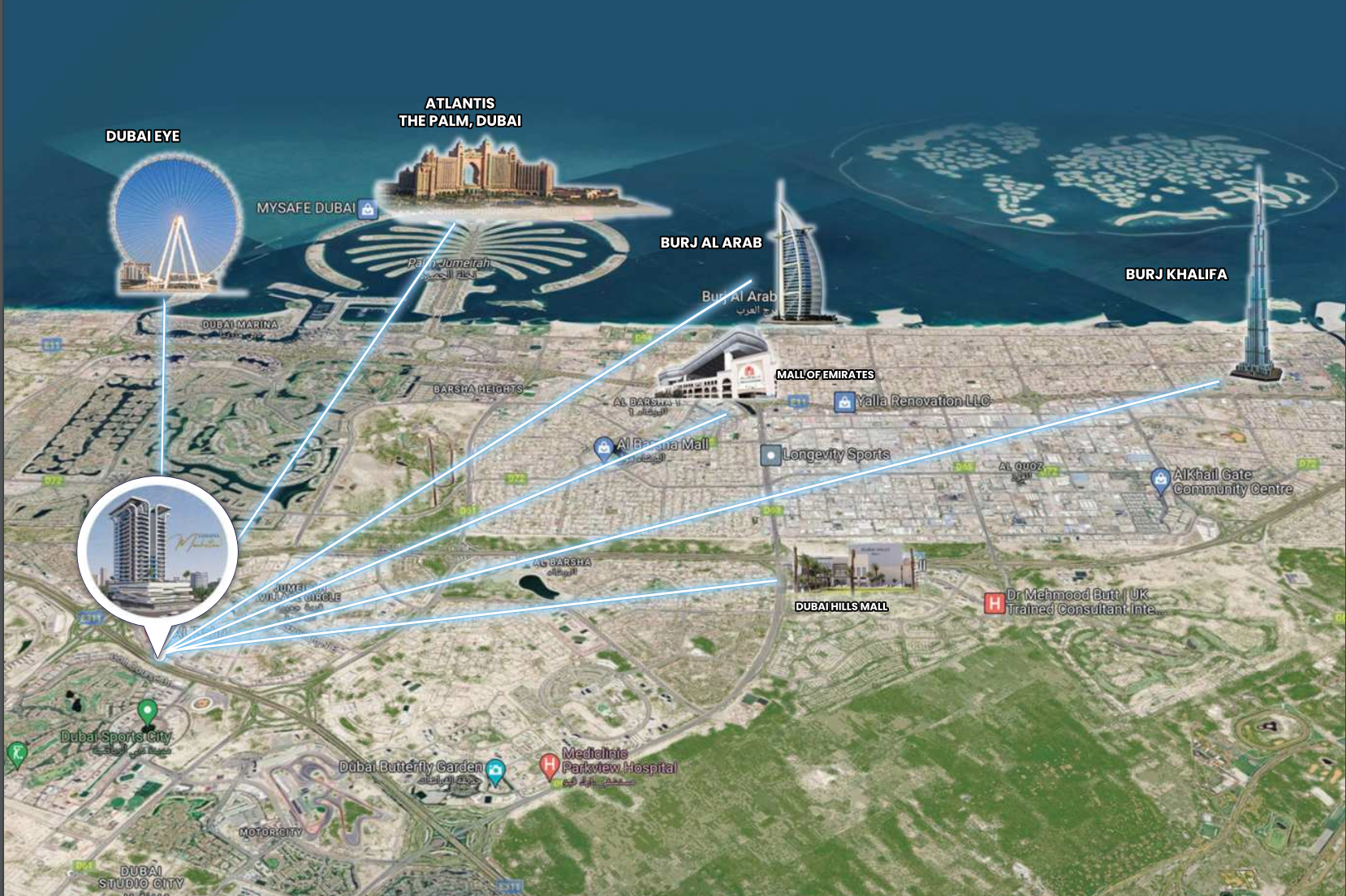 The prime location of Samana Manhattan in JVC offers homeowners seamless access to Dubai’s most vital hubs and attractions. Its immediate proximity to Sheikh Zayed Road ensures rapid commutes to the city's bustling business districts and leisure destinations, placing the best of Dubai within easy reach. Families will particularly appreciate the project's accessibility to essential educational facilities, with Kids World Nursery, Little Wonders Nursery, and JSS International School all just a convenient 5-minute drive away, fostering a truly family-friendly environment.