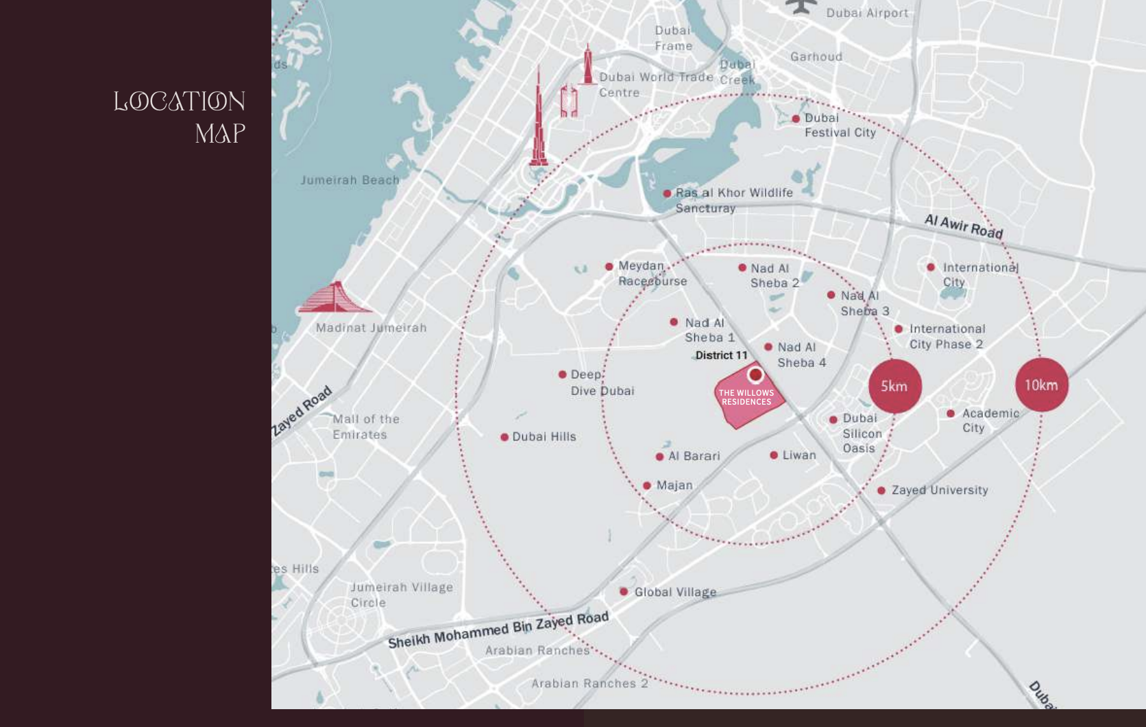 Strategically positioned, The Willows Residences ensures unparalleled connectivity while preserving a peaceful suburban ambiance. Residents benefit from direct, swift access to the vibrant heart of Downtown Dubai, the bustling business hub of Business Bay, and seamless routes to Dubai International Airport. Major arteries like Al Khail Road and Sheikh Mohammed Bin Zayed Road are effortlessly reachable, placing the entire city within easy grasp. Furthermore, the locale boasts proximity to world-class educational institutions, luxury retail destinations, and an array of recreational facilities, affirming MBR City's status as a lifestyle destination.