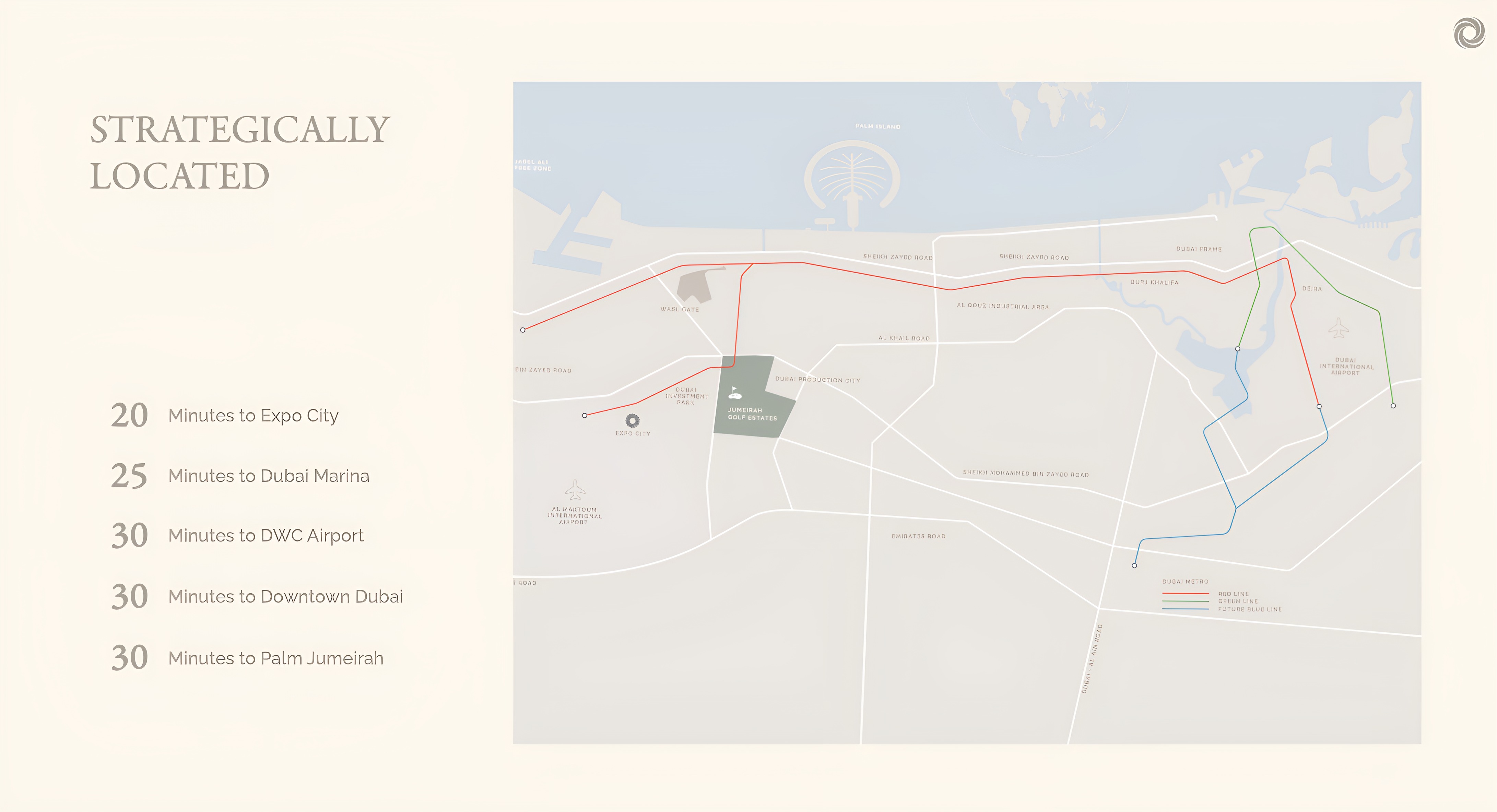 Ashwood Estates enjoys a truly prime location at the heart of Jumeirah Golf Estates, renowned for its championship golf courses and vibrant community. Residents benefit from exceptional central accessibility, with easy reach to major entry and exit points, seamless connections to Dubai's key transport networks, and walking distance to nearby residential clusters. Beyond connectivity, the location offers proximity to top-tier international schools and premium healthcare facilities, ensuring a family-friendly environment. A distinctive feature is the breathtaking natural surroundings, with nearly 80% open space providing panoramic golf course views, lush greenery, and impeccably manicured fairways, all from an elevated position that ensures sweeping vistas and a serene ambiance.